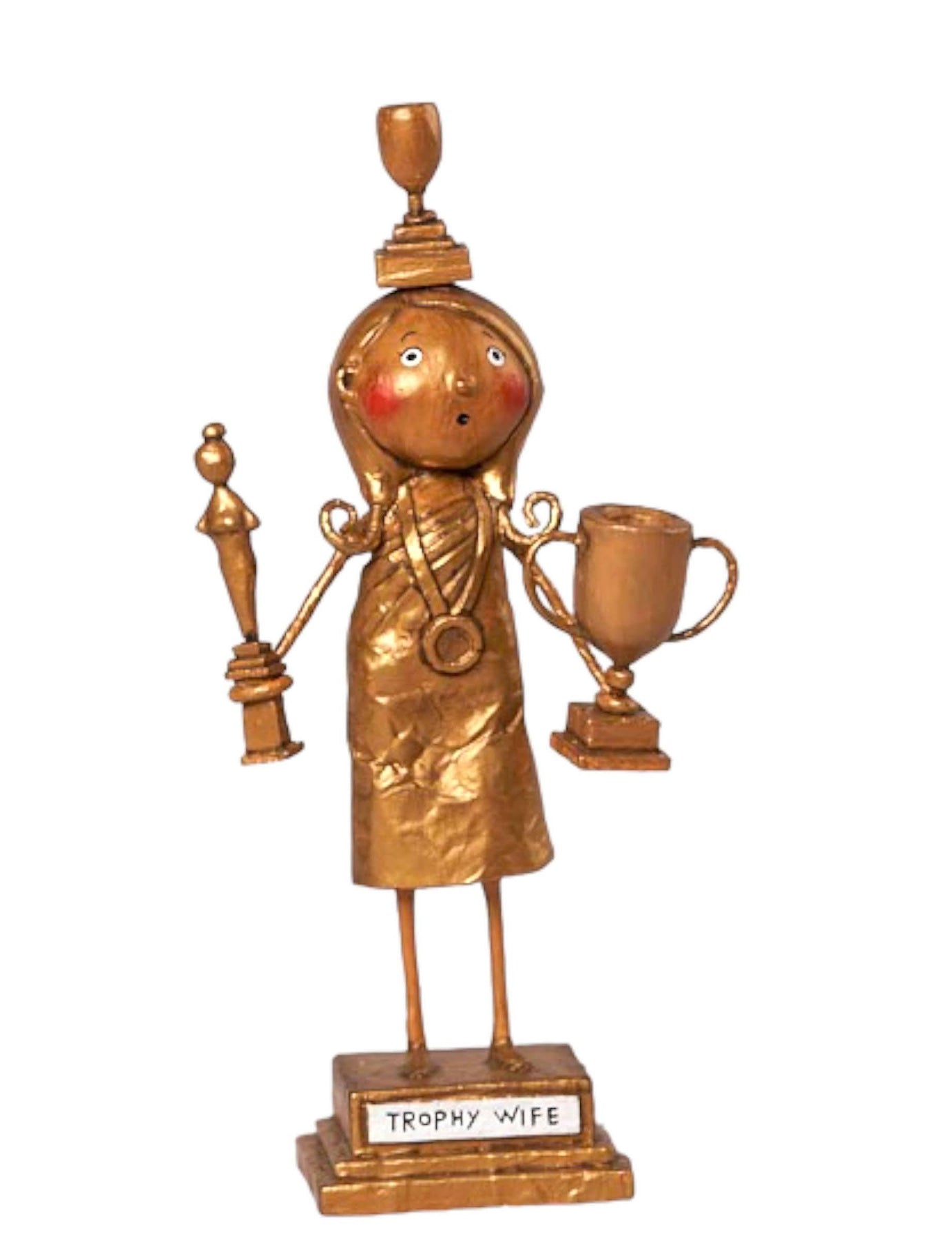 This Trophy Wife Lori Mitchell Figurine is designed by Lori C. Mitchell™ and made of durable poly resin. Standing at 8" tall, this quirky figurine is the perfect addition to any collection or a unique gift for a special someone (or yourself). No need to win a trophy, this figurine is already a winner!