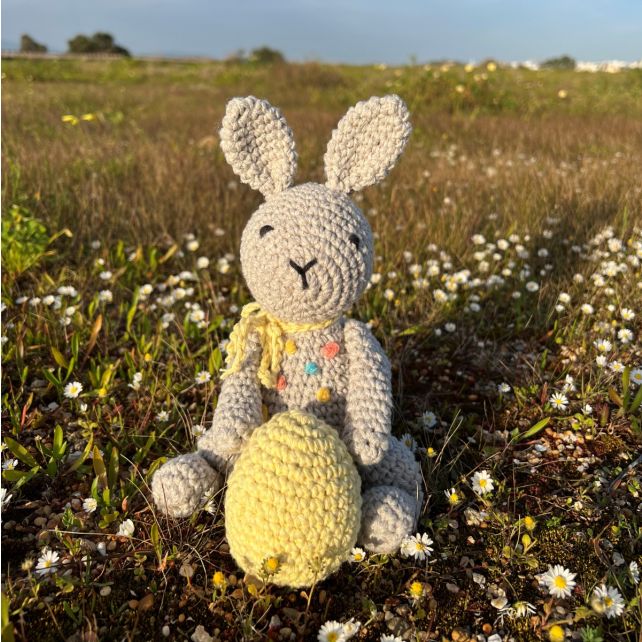 This is a fun Amigurumi project for you to crochet all year, but perfect to use in a Easter egg hunt scenario. Designed by Milva Handicrafts from Portugal, inspired by the countryside and nature.It also has a little bit of embroidery – French knot and we have a YouTube video in our channel to help you thru the process. This DIY crochet pattern assumes you have intermediate experience in the field of amigurumi crochet and are able to read crochet patterns.