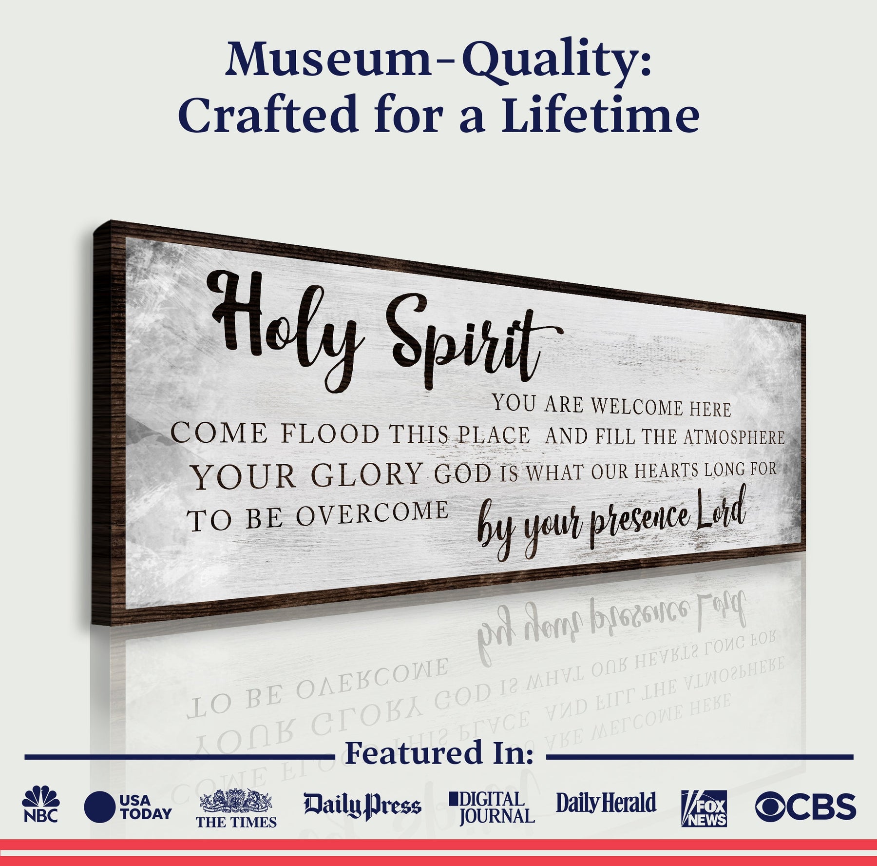 The Holy Spirit You Are Welcome Here canvas wall art has two rustic styles and three sizes to choose from. The wall art is handcrafted from high-quality materials that are sure to stand the test of time! Our Holy Spirit You Are Welcome Here is ready to hang and delivered free of charge!