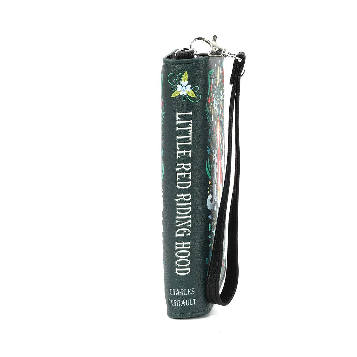 The Little Red Riding Hood is a stylish and thematic accessory inspired by the beloved Fairytale. Whether you're a fan of the Little Red Riding Hood or the big bad wolf or simply appreciate unique accessories, this book wallet is sure a great gift item for Christmas, White Elephant gift idea, a book lover, birthday gift and a great Halloween costume accessory. This is a RFID blocking wallet. Uniquely designed to resemble a book Button clasp main closure Zippered compartment Transparent ID card slot 9 card slots Bill compartment Interior pockets Includes a detachable 6in wristlet strap High quality vinyl material Measures approximately Length: 5in Width: 1.5in Height: 8in Keywords: little red riding hood clutch, fairytale book bag, red riding hood purse, vintage storybook handbag, literary clutch accessory, boutique fairytale bag, birthday gift for readers, Christmas gift for book lovers, graduation gift for literature fans, Mother’s Day gift for teachers, book club gift idea