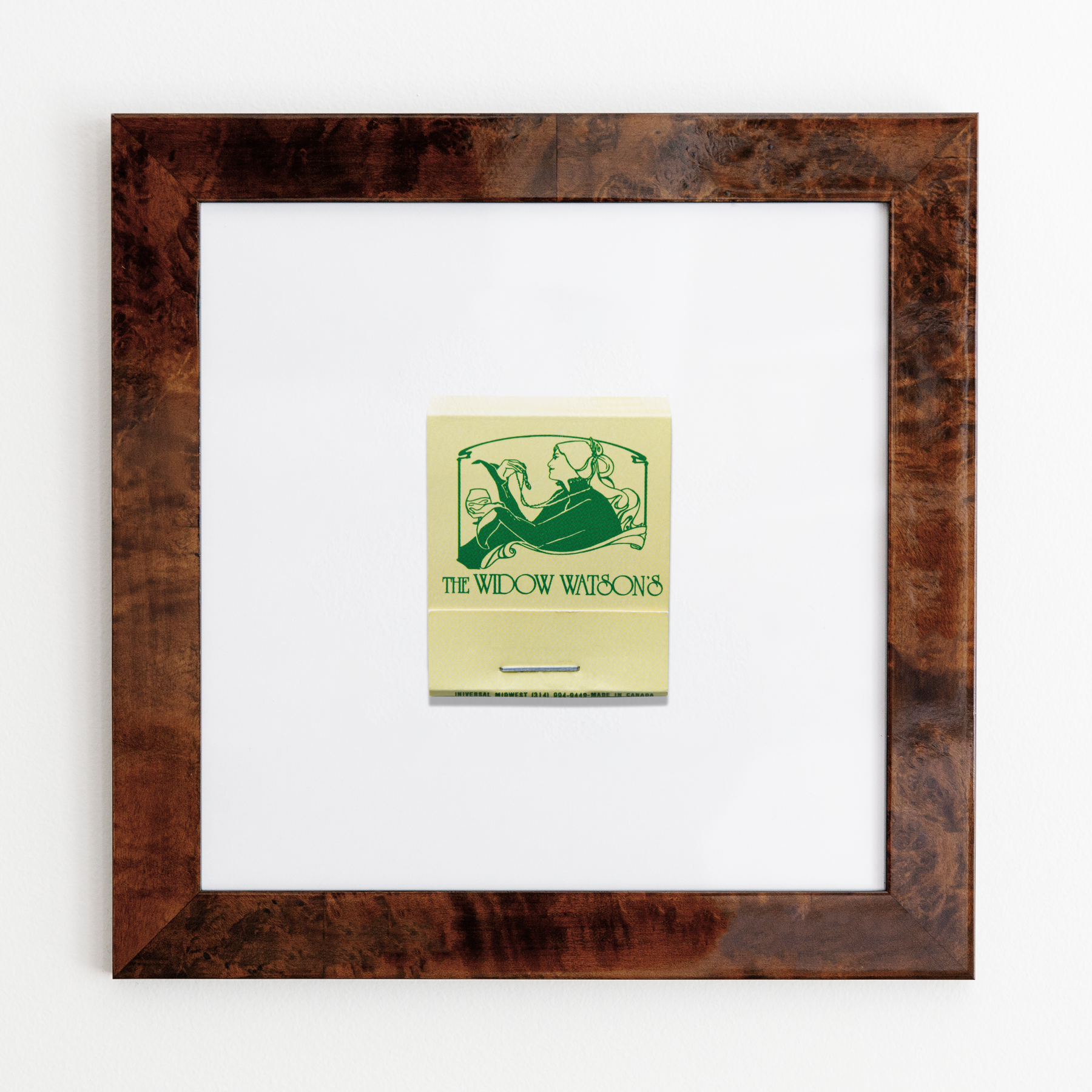 The Widow Watson's print showcases an iconic matchbook design.