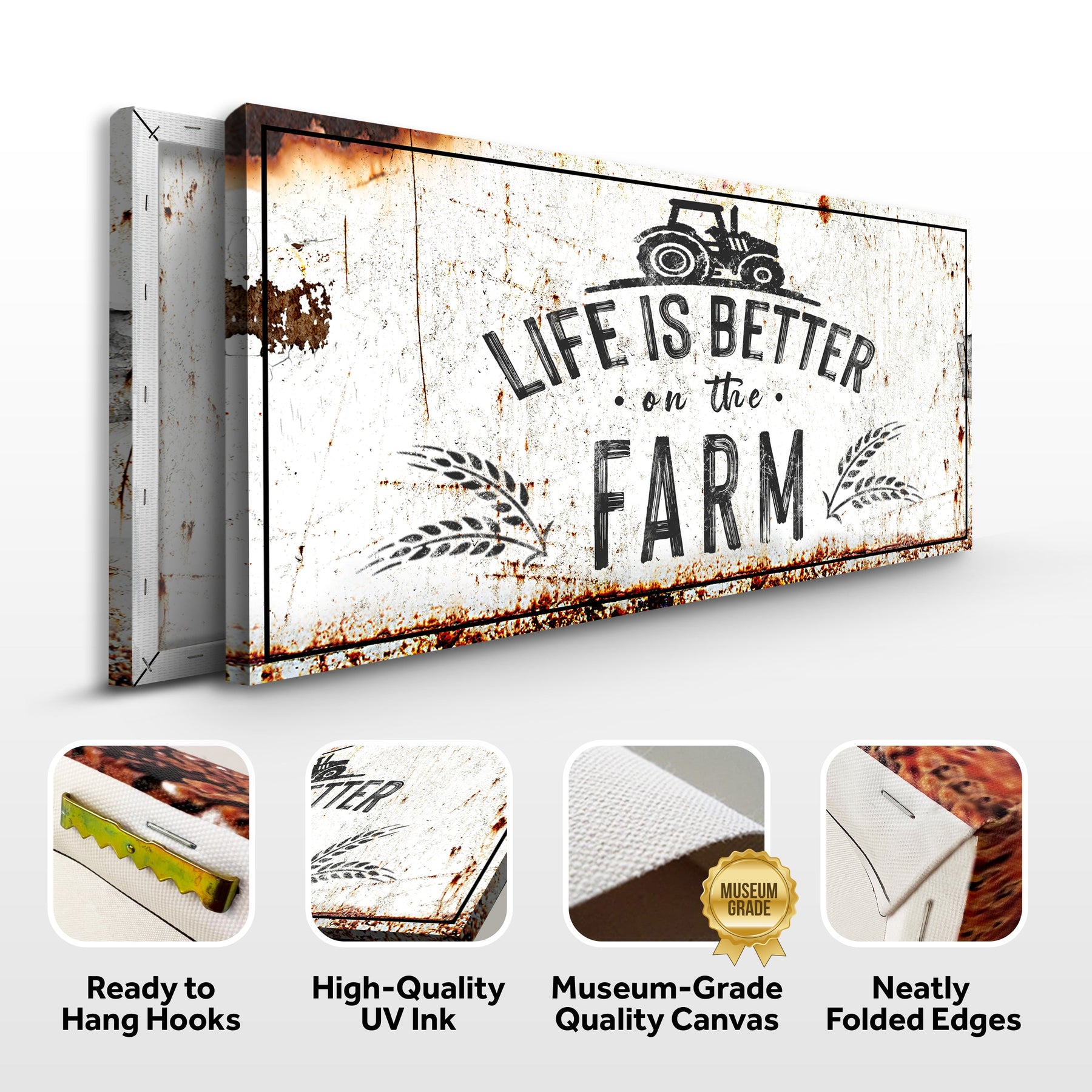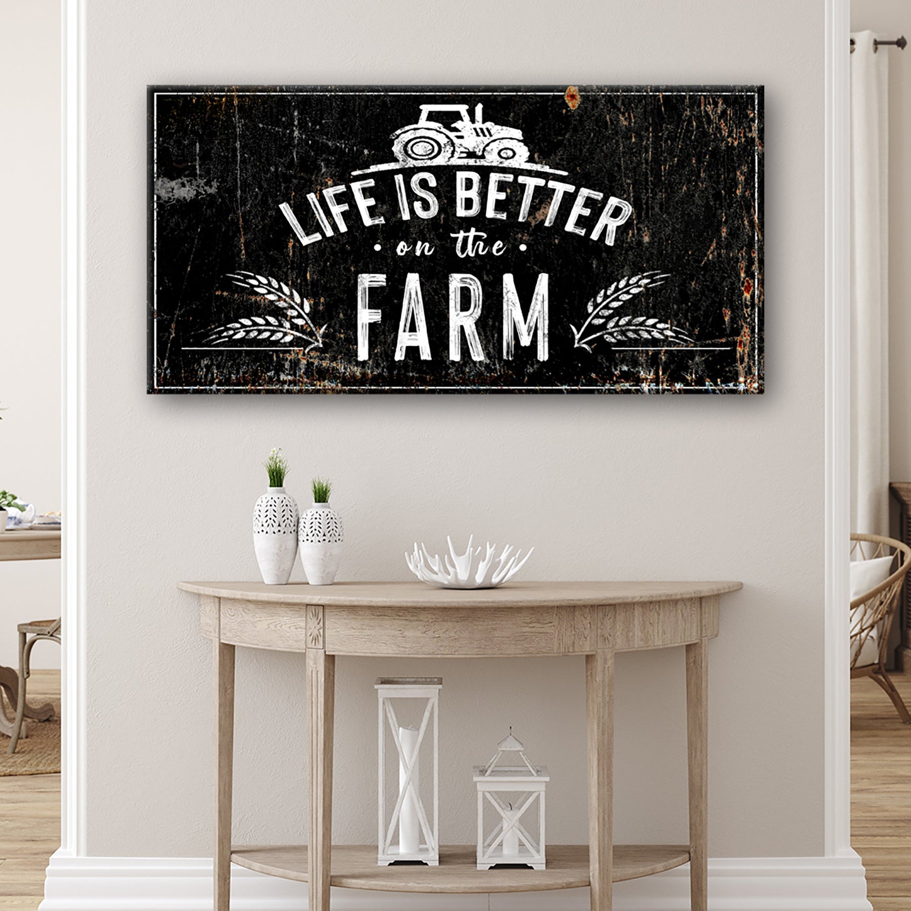 This Life Is Better On The Farm canvas wall art is made to last since it is constructed using high-quality materials and comes ready to hang. Every time you see it, the strong statement will motivate you. The rustic design is ideal for any farmhouse-style home. Therefore, if you're fantasizing about living on a farm, check out this Life Is Better On The Farm wall art