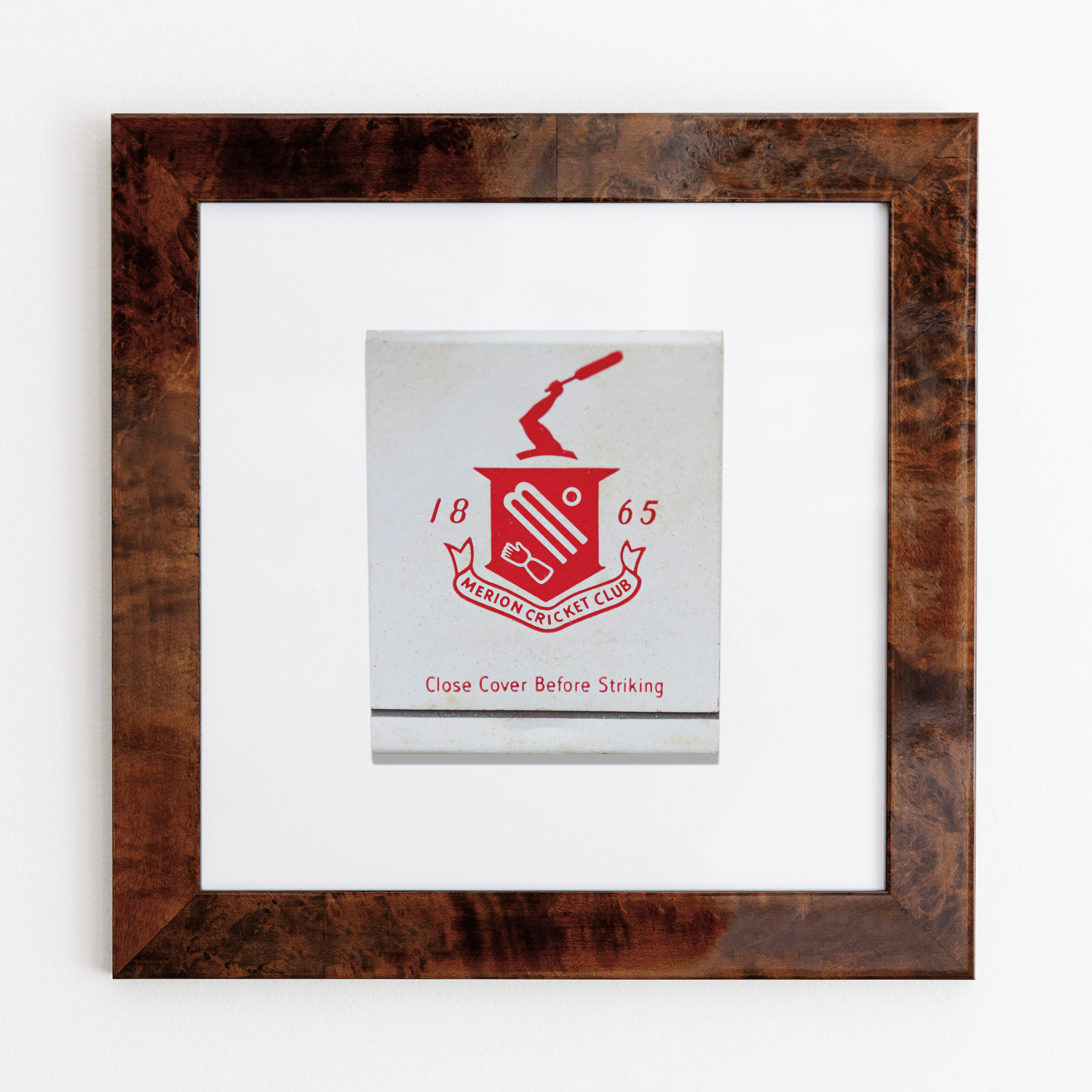 The Merion Cricket Club print showcases an iconic matchbook design.