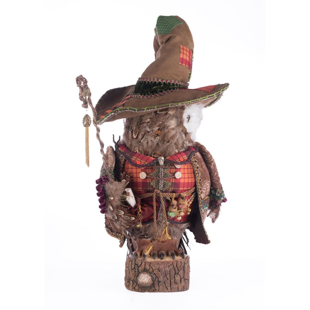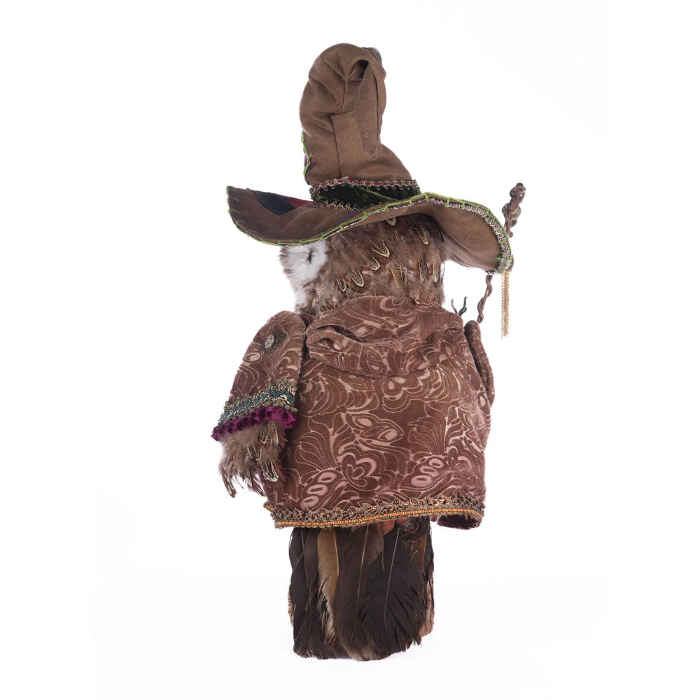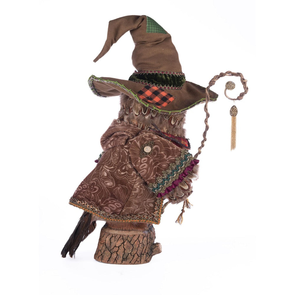 Octavius The Owl Warlock combines eerie craftsmanship with mystical charm. This 11.5 × 10 × 20-inch figure features a sculpted resin face, wings, and tail covered in realistic feathers. Dressed in a custom, artist-made embellished outfit and holding a detailed scepter, Octavius embodies the perfect blend of arcane power and haunting elegance—he's ideal for your spooky space.