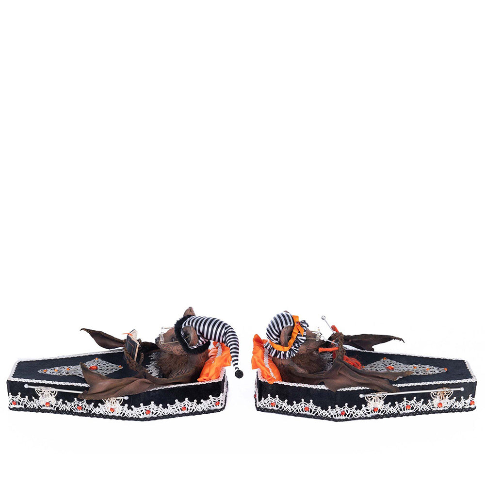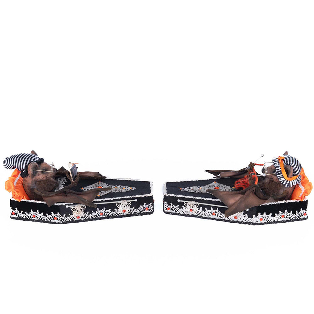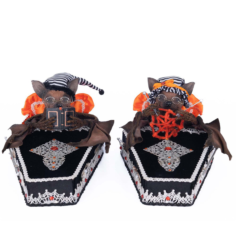 Add a whimsical and spooky touch to your Halloween decor with the Bedtime with the Batsons Assortment of 2 from Katherine's Collection. Each piece, measuring 14.25 × 8 × 4.5 inches, showcases a charming and slightly eerie scene featuring the Batson family ready for bed in their haunted, bat-themed attire. Handcrafted with intricate detail, these adorable yet spooky figures are perfect for adding character and fun to your mantle, shelves, or any Halloween display. With their playful design and exceptional craftsmanship, the Bedtime with the Batsons set brings a cozy, ghoulish charm to your seasonal home decor.