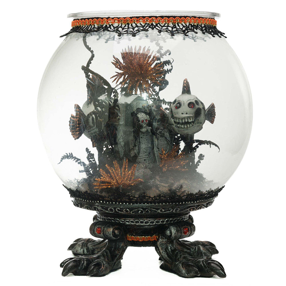 The Shallow Grave Fishbowl from Katherine's Collection brings a spooky, whimsical touch to your Halloween decor. Measuring 7.5 × 7.5 × 9.5 inches, this handcrafted piece features a unique, eerie design with a fishbowl perched atop a shallow grave scene. Perfect for holding Halloween-themed treats or as an unconventional centerpiece, it combines eerie charm with playful fright. Whether displayed on your mantle, table, or shelves, the Shallow Grave Fishbowl is a captivating way to add a touch of the macabre to your seasonal display.