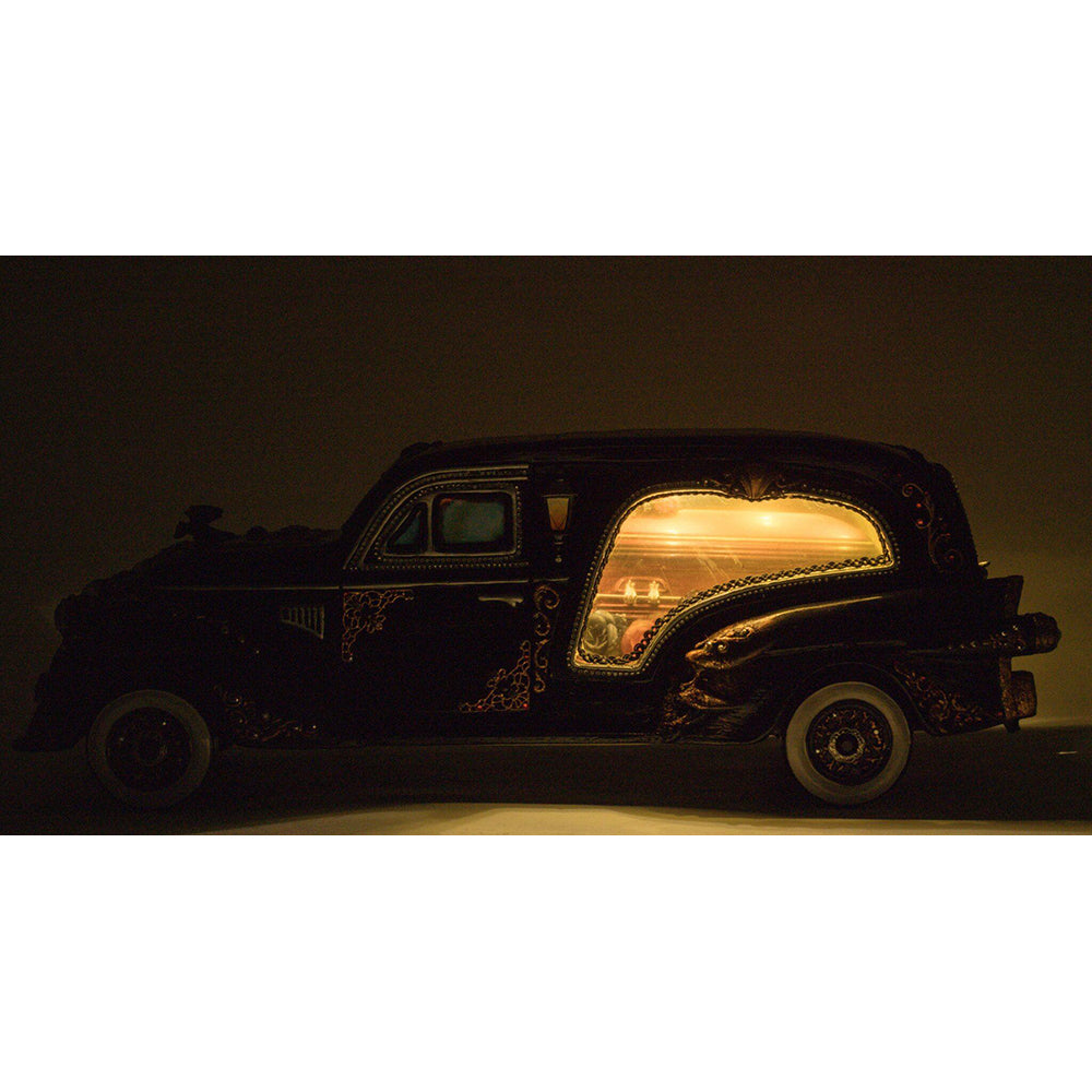 Step into the eerie world of the supernatural with The Macabre's Cursed Hearse from Katherine's Collection. Measuring 20 × 8 × 7 inches, this handcrafted piece features an intricately detailed hearse that exudes a sense of dark mystery and haunting elegance. The vintage, cursed design adds an air of gothic charm to your Halloween decor. Perfect for adding a spooky touch to any shelf, mantel, or Halloween vignette, this unique piece creates a dramatic, macabre atmosphere, making it an unforgettable statement for your seasonal display.