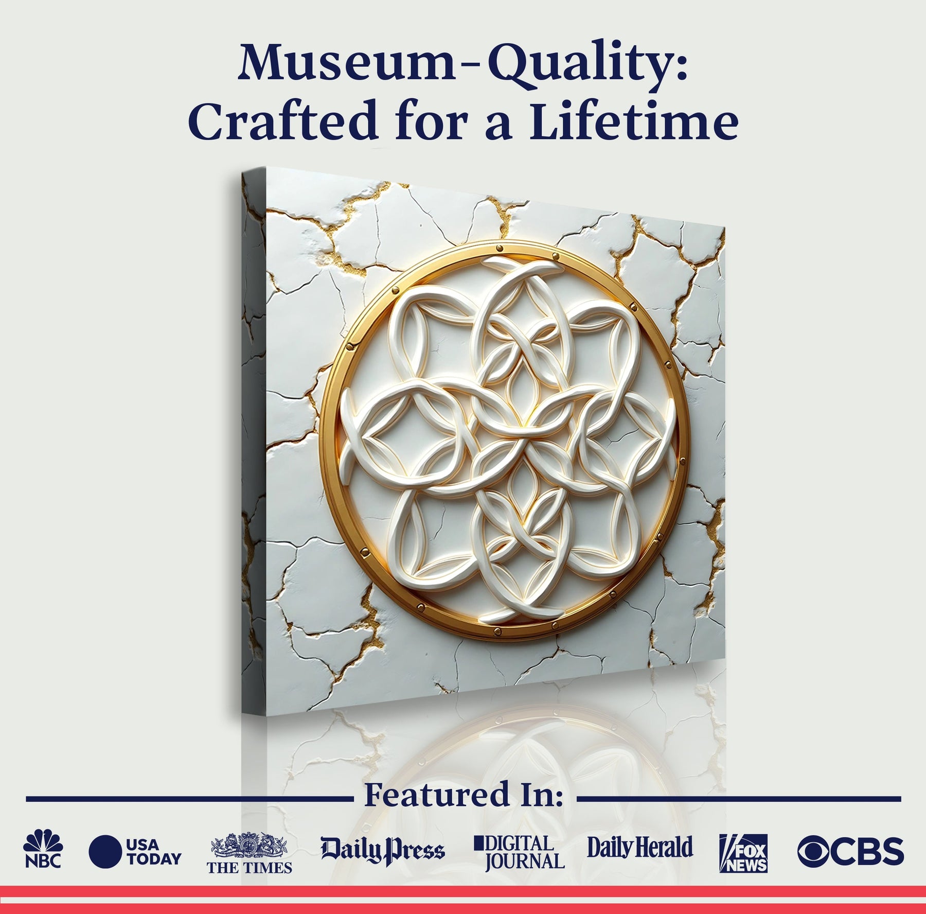 Elevate your space with the timeless elegance of the Flower of Life, a sacred geometric pattern symbolizing harmony, balance, and infinite creation. This stunning 3D-inspired artwork features a mesmerizing gold-lined pattern against a textured, cracked background, creating a striking visual depth that blends modern sophistication with spiritual energy.