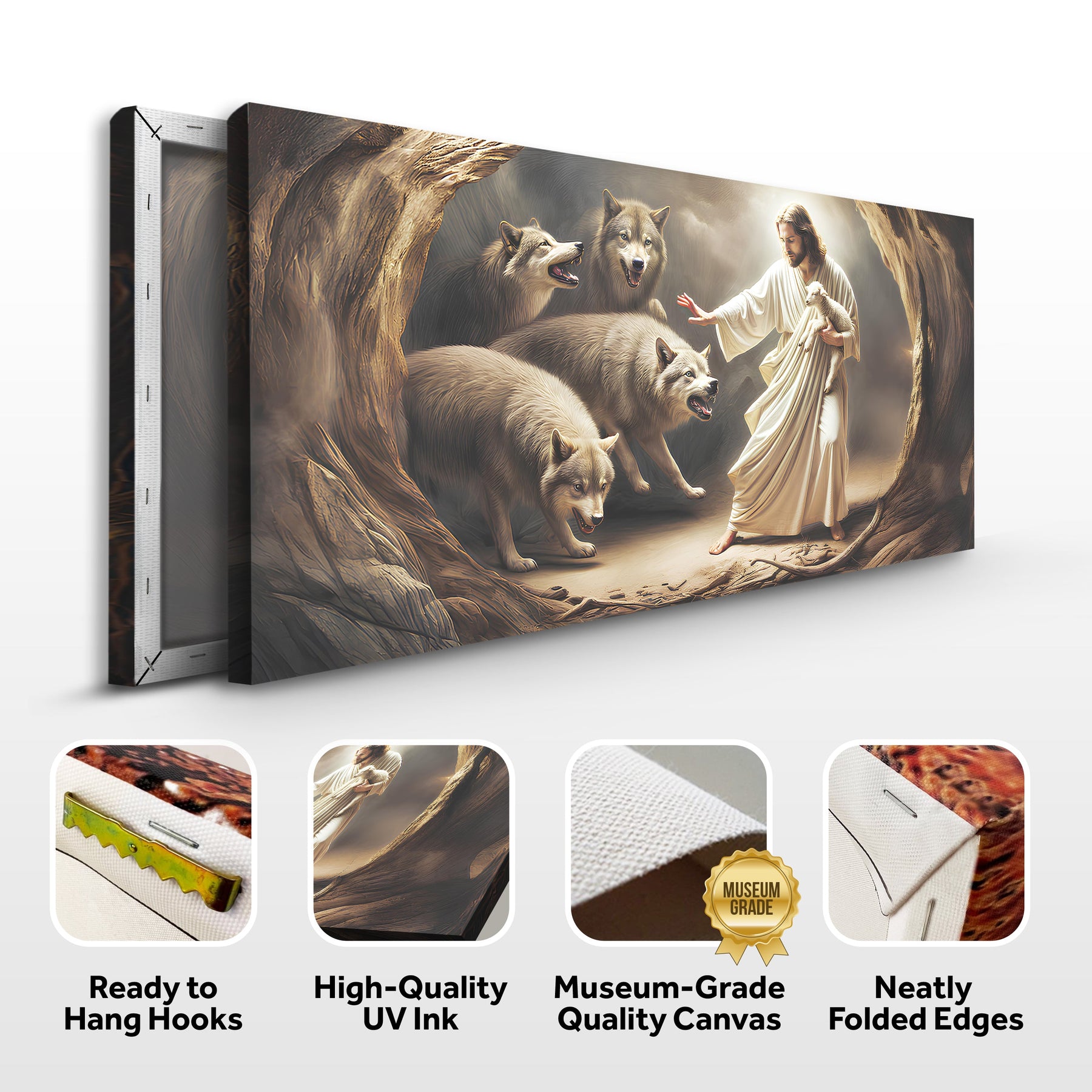 Jesus Protects The Lamb From Wolves Faith Wall Art III