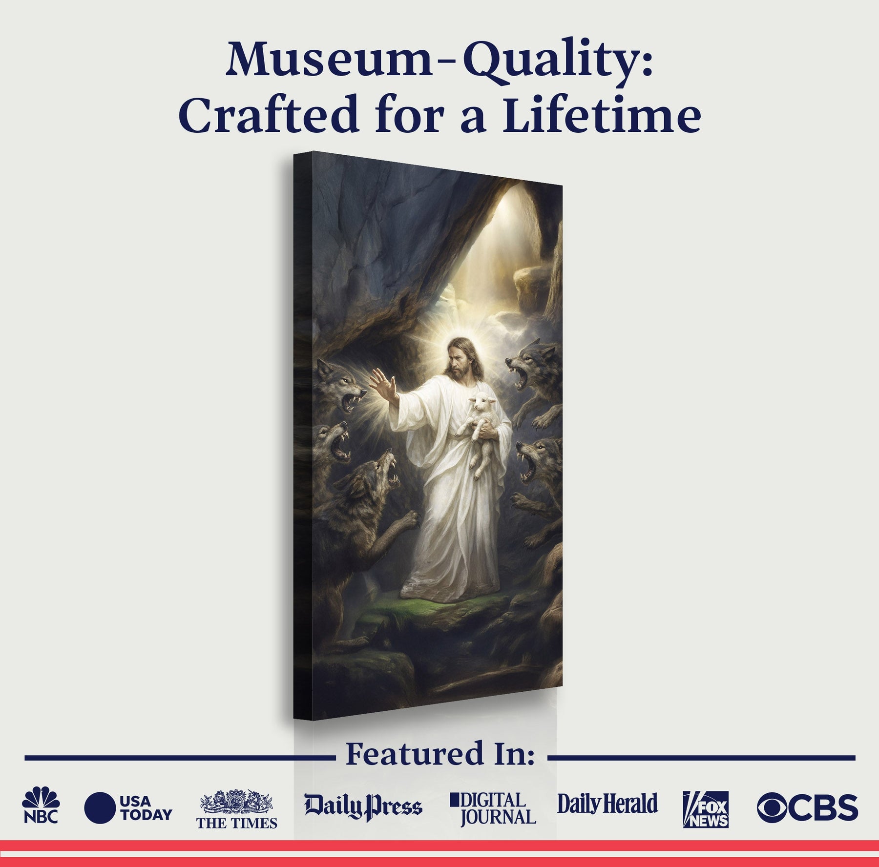 Jesus Protects The Lamb From Wolves Faith Wall Art XV