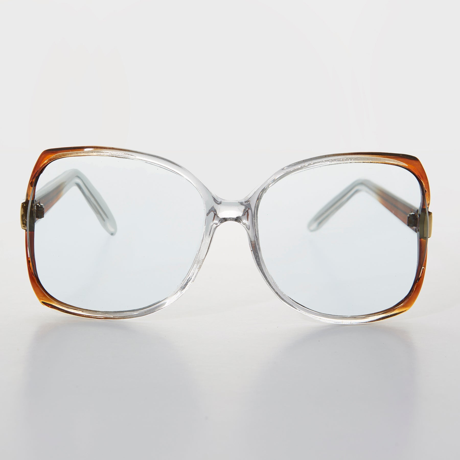 You simply can’t go wrong with these oversized vintage reading glasses with metal embellished French cut lenses. Optical quality frame with wire core temples. 1980s new old stock.