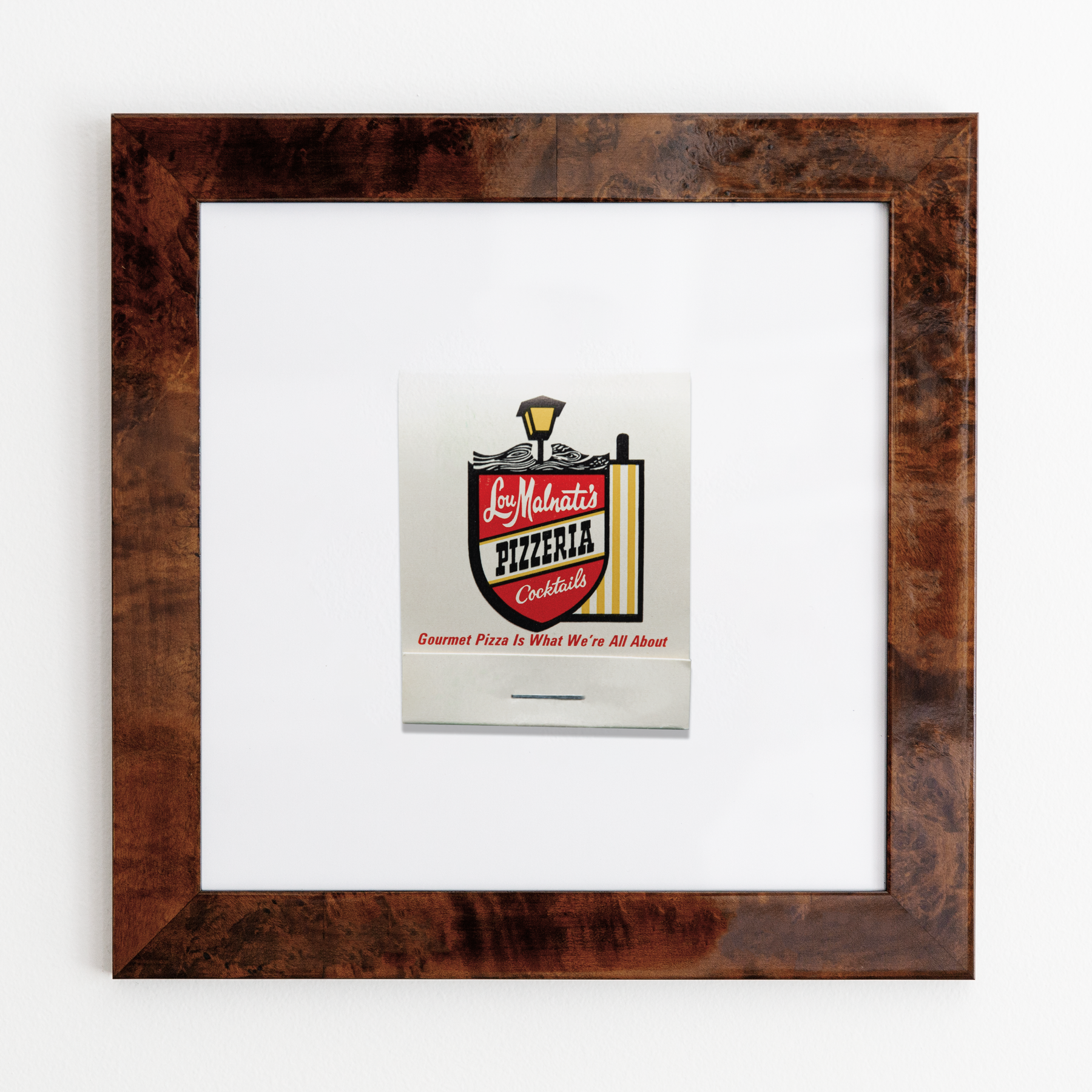 The Lou Malnati's Pizzeria print showcases an iconic matchbook design.