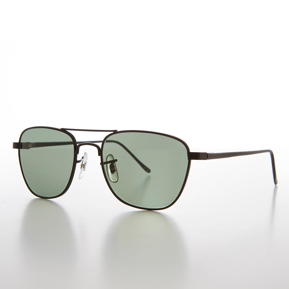 This smaller square version of the iconic aviator features a real glass lens with metal rims and plastic temples.