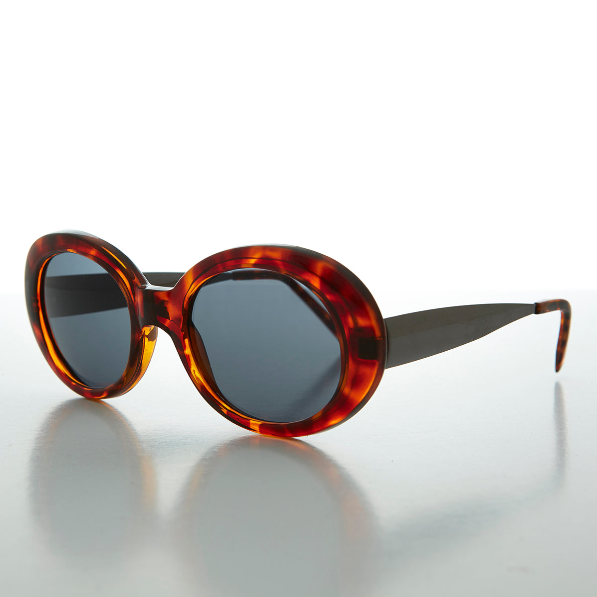 This iconic sunglass shape stands out from our memories of the grunge generation days. The bold frame features metal temples with thick acetate temple ends. This sunglass will have you looking fabulous in any season. Made from quality acetate with metal hinges.