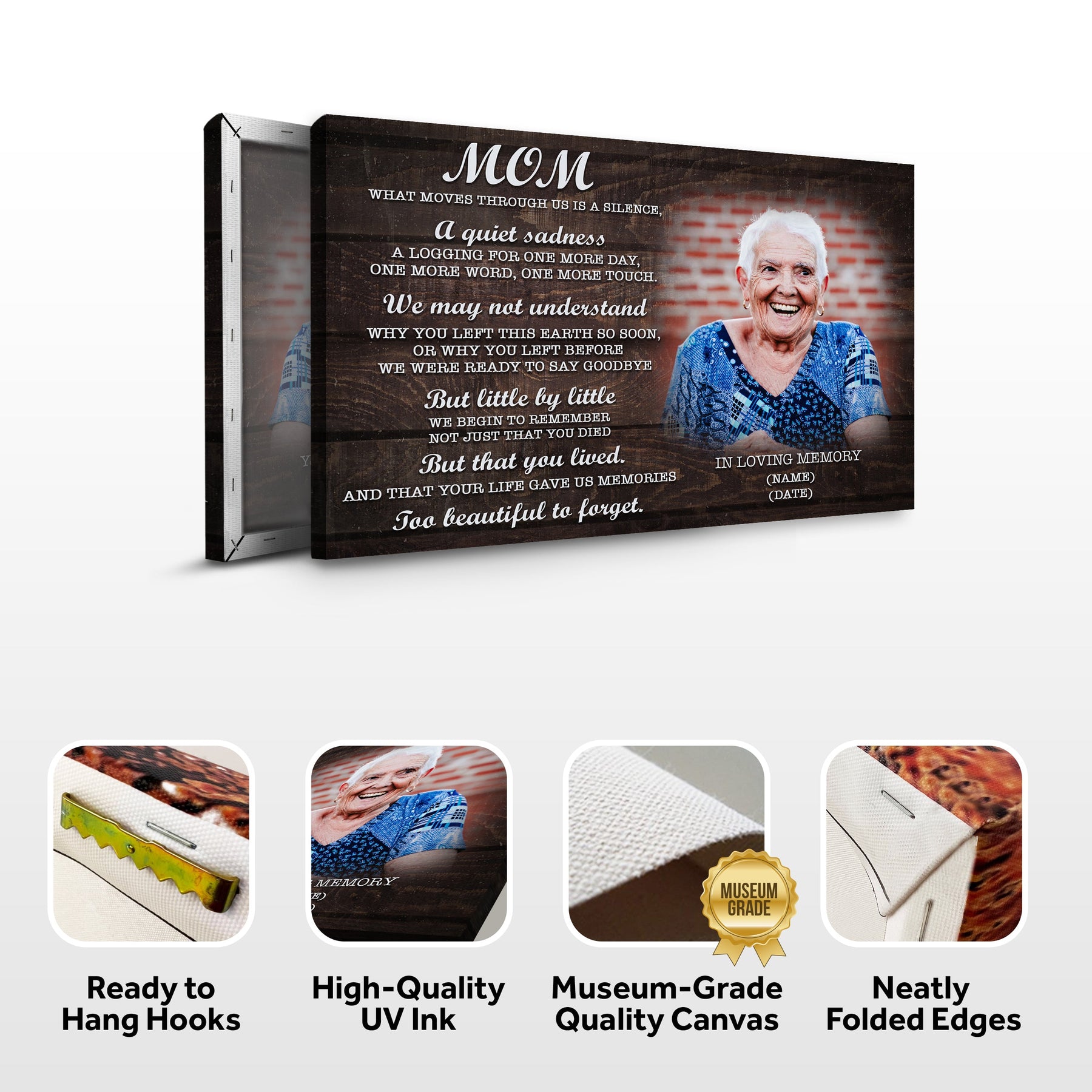 Mom, You're Too Beautiful To Forget Happy Mother's Day Sign is a beautiful Mom canvas wall art. It would make a great gift for your mum on Mother's Day. The sign is printed with the words "Mom, You're Too Beautiful To Forget" in a playful font. It is sure to make your mum smile and remind her how lucky you are to have her as your mother. This Mom, You're Too Beautiful To Forget Happy Mother's Day Sign is made of high-quality materials and is sure to last for years to come.