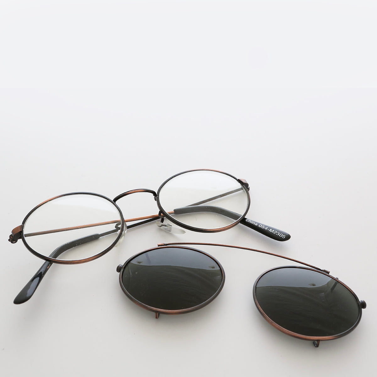 These oval clip on sunglasses offer the perfect blend of style and convenience. Easily clip them on and off for versatile use, or leave them attached for a trendy vintage look. Enjoy the benefits of both sunglasses and eyeglasses with this functional and stylish accessory.