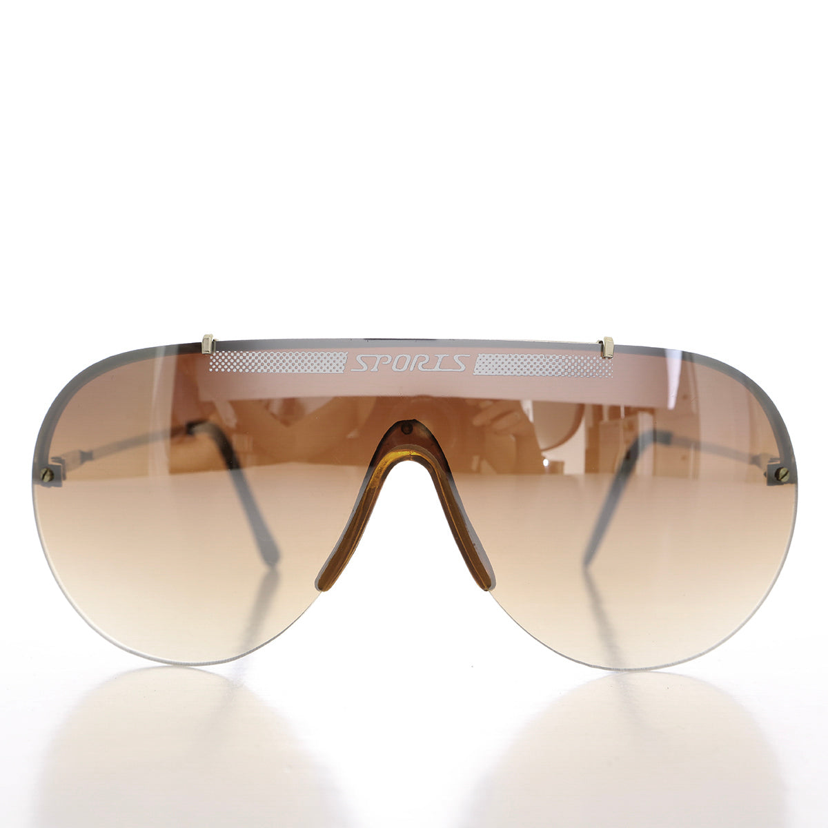 This 80s aviator features a one piece lens and sporty accents. New old stock. Never worn. Great condition. UV protection.