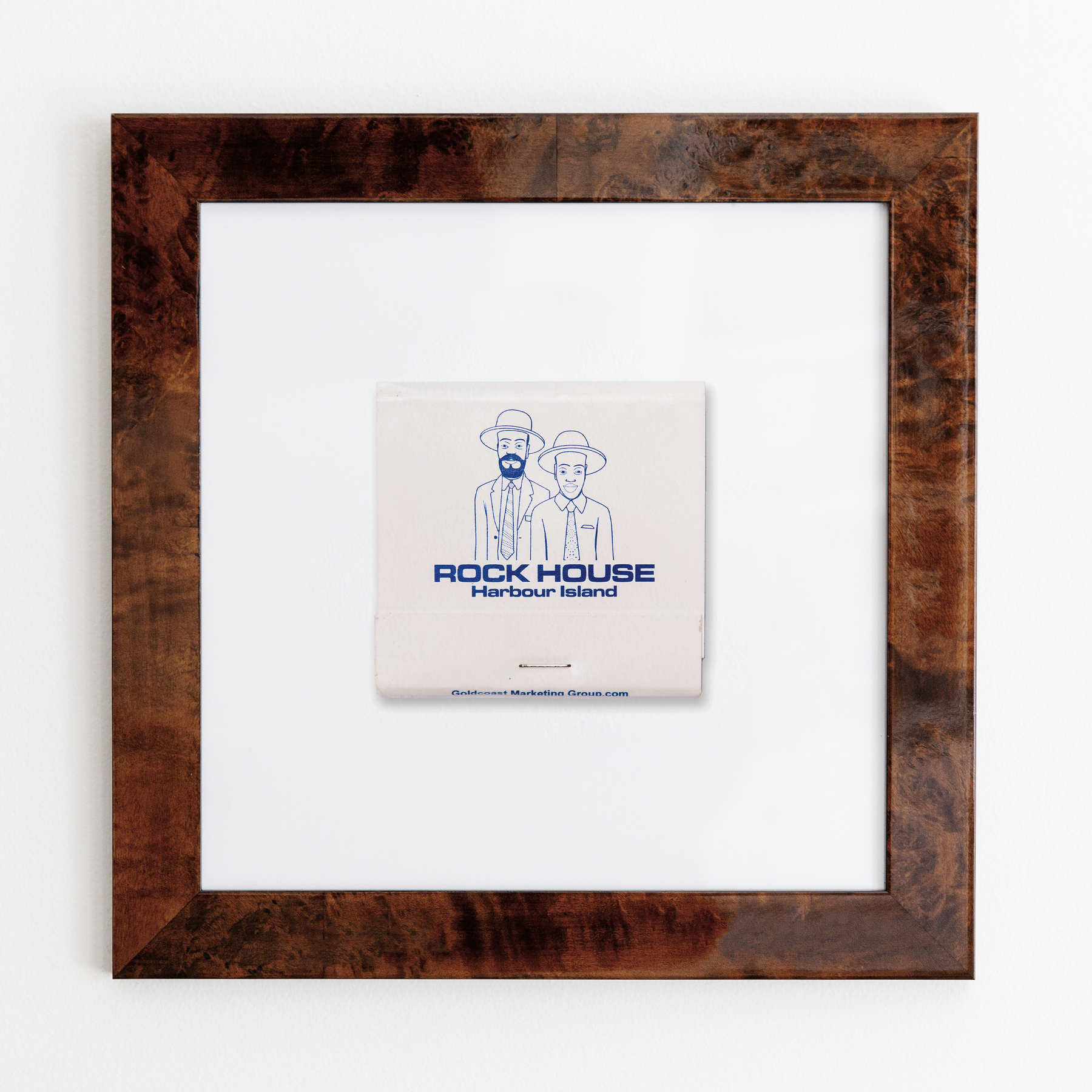 The Rock House Harbour Island print showcases an iconic matchbook design.