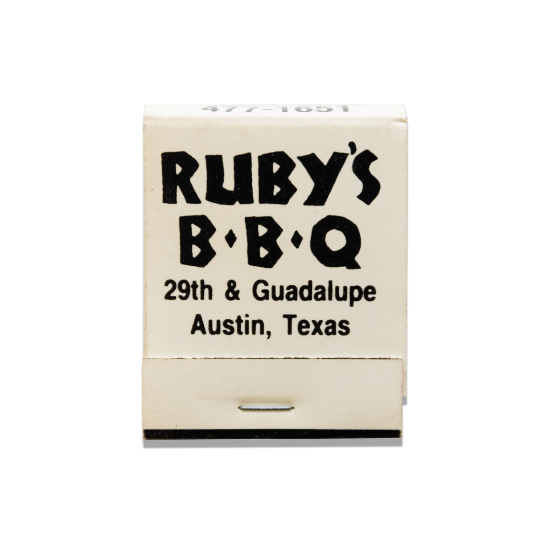 The Ruby's BBQ (Front) print showcases an iconic matchbook design.