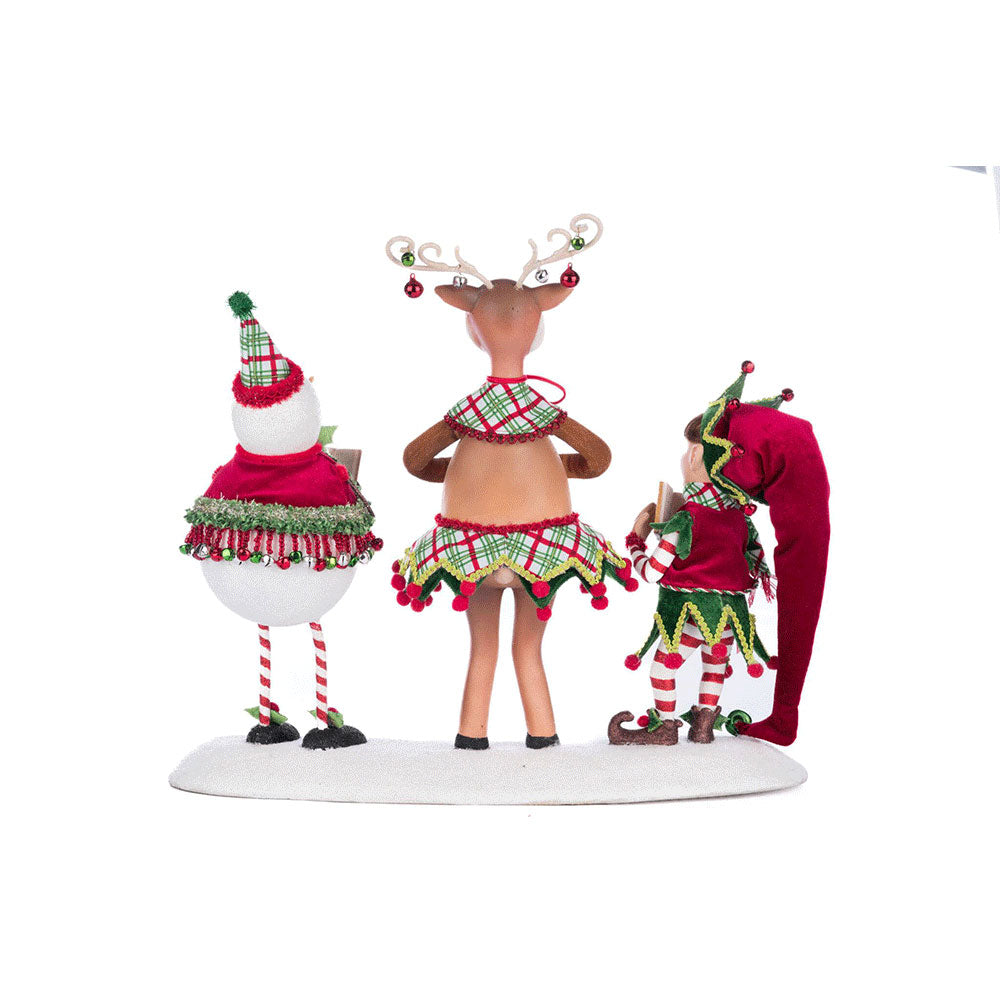 This exquisite set of hand-painted resin tabletop decor by Katherine's Collection captures the charm of the holiday season with refined artistry. Featuring Alfie, Deerdra, and Snowy as Christmas carolers, each piece is thoughtfully adorned with subtle sparkle that adds just the right touch of festive elegance. Perfect for enhancing your holiday ambiance with timeless sophistication.