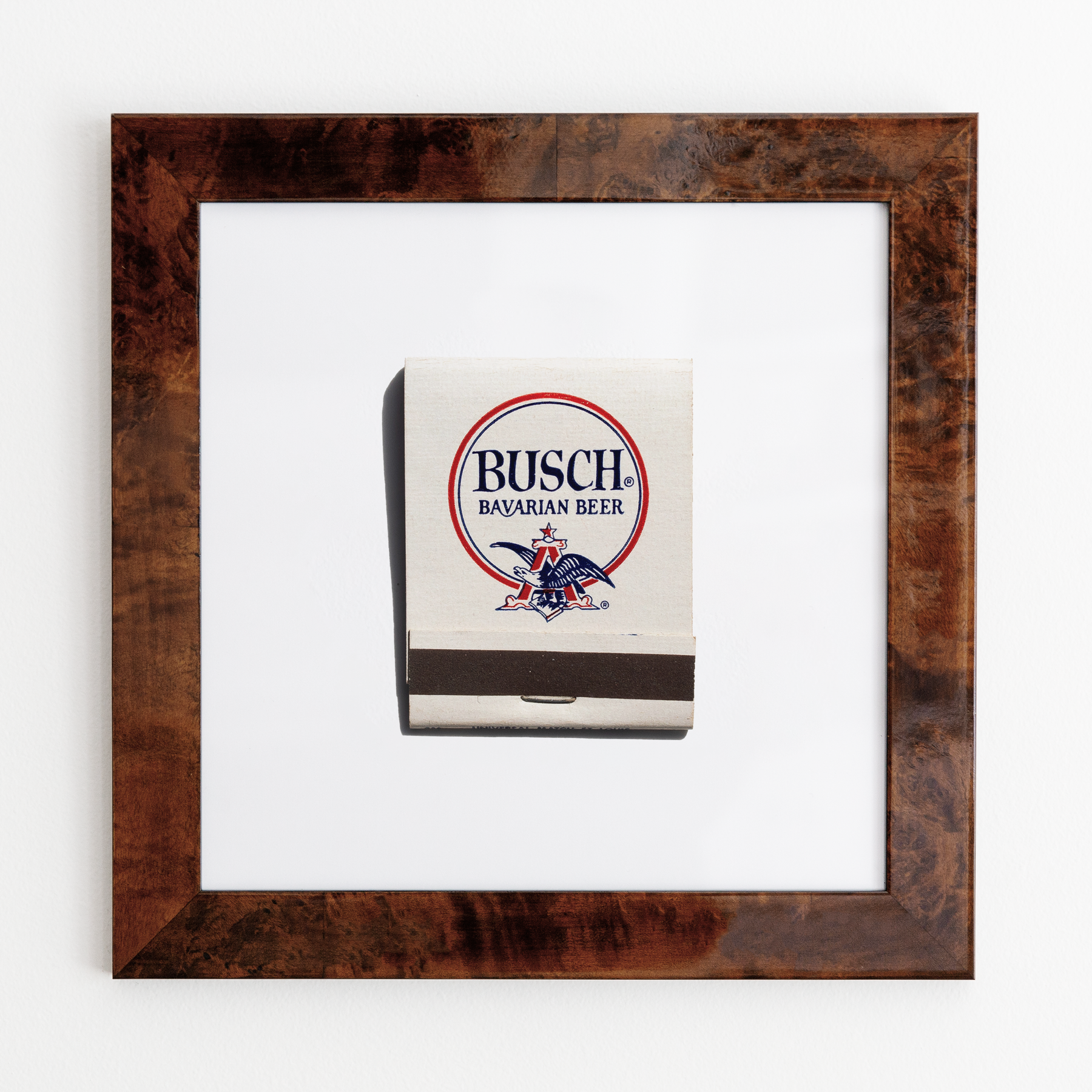 The Busch Bavarian Beer print showcases an iconic matchbook design.