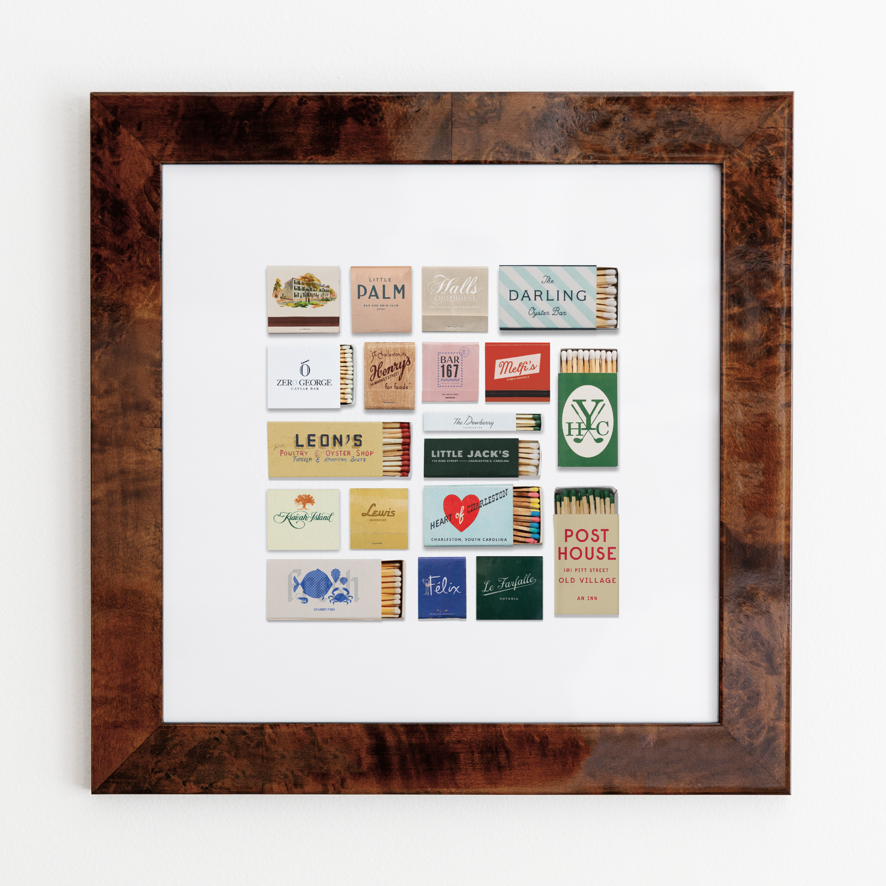 The Charleston Collage (New) print showcases an iconic matchbook design.