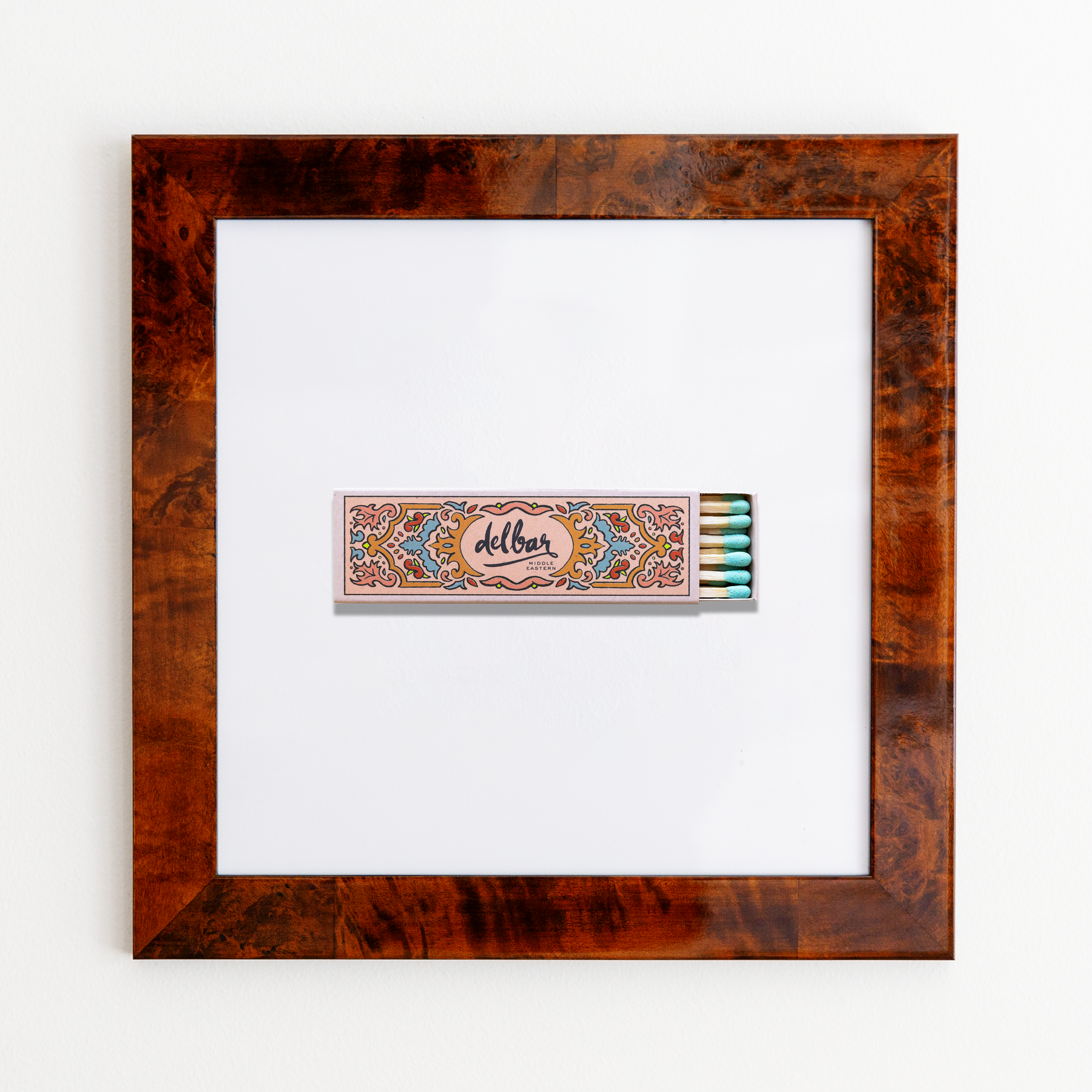 The DelBar print showcases an iconic matchbook design.