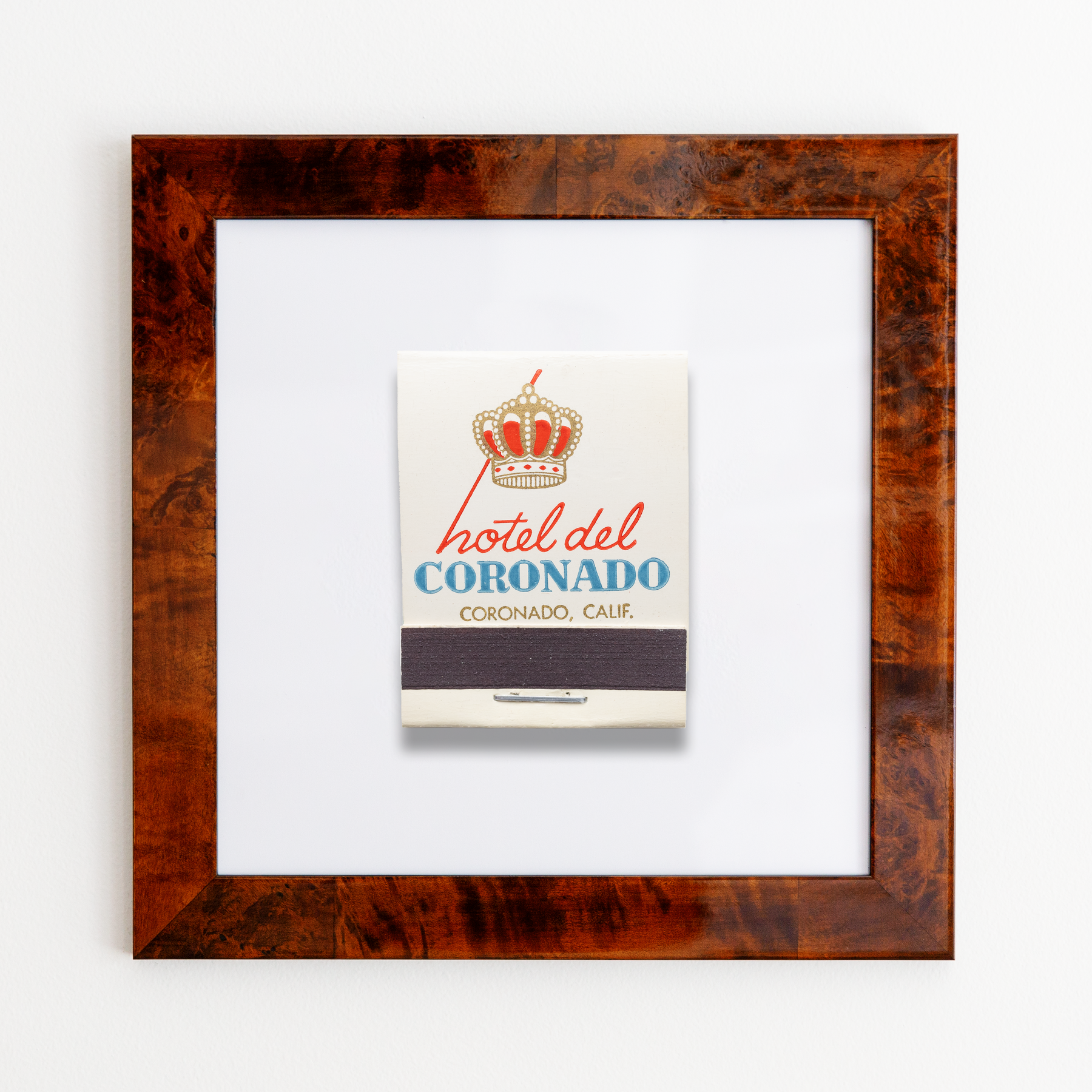 The Hotel del Coronado print showcases an iconic matchbook design.