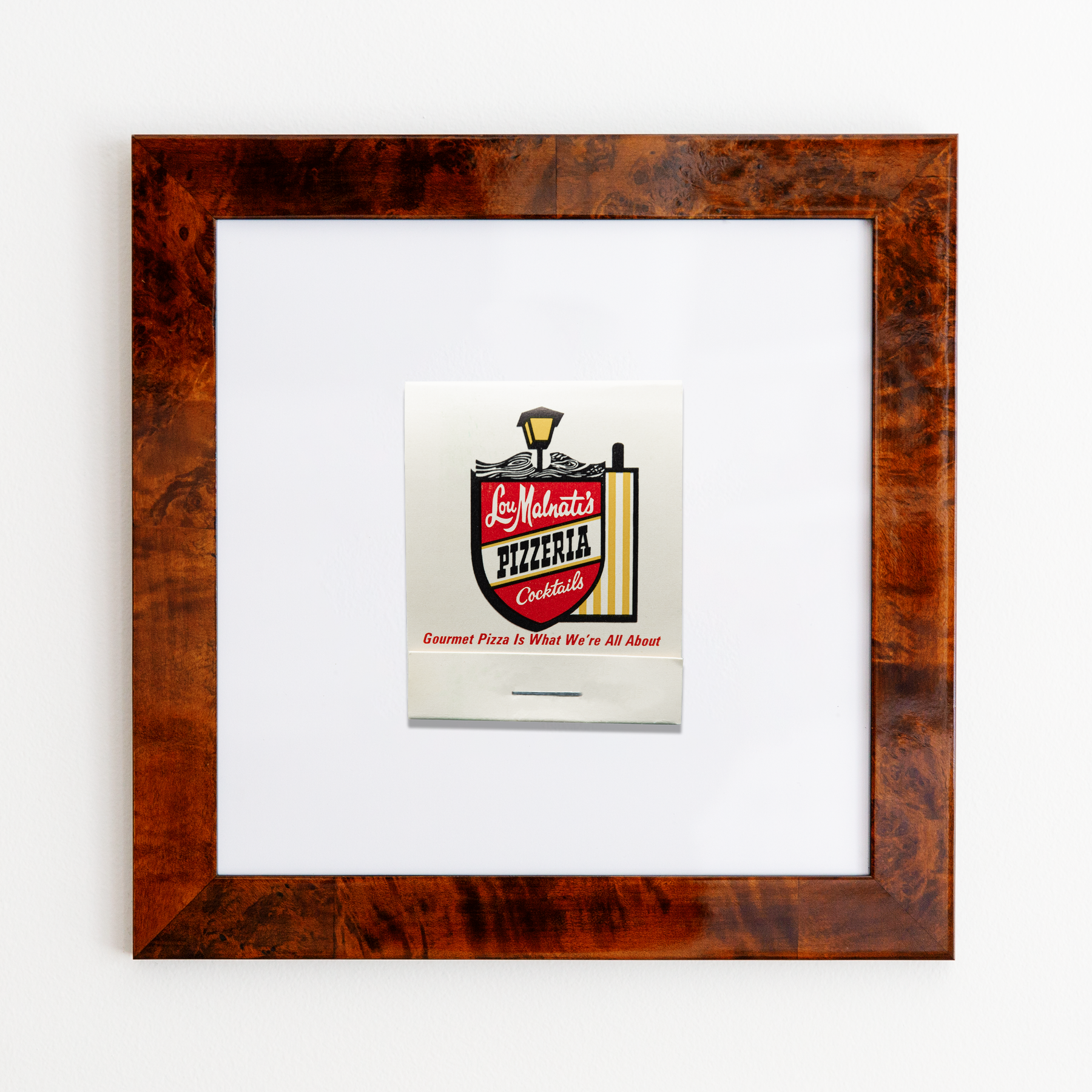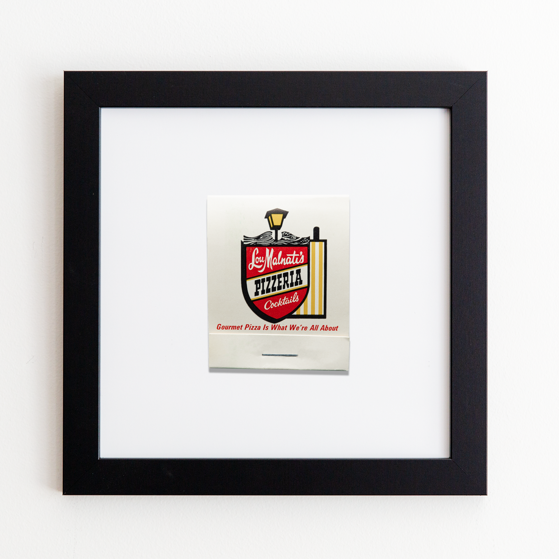 The Lou Malnati's Pizzeria print showcases an iconic matchbook design.