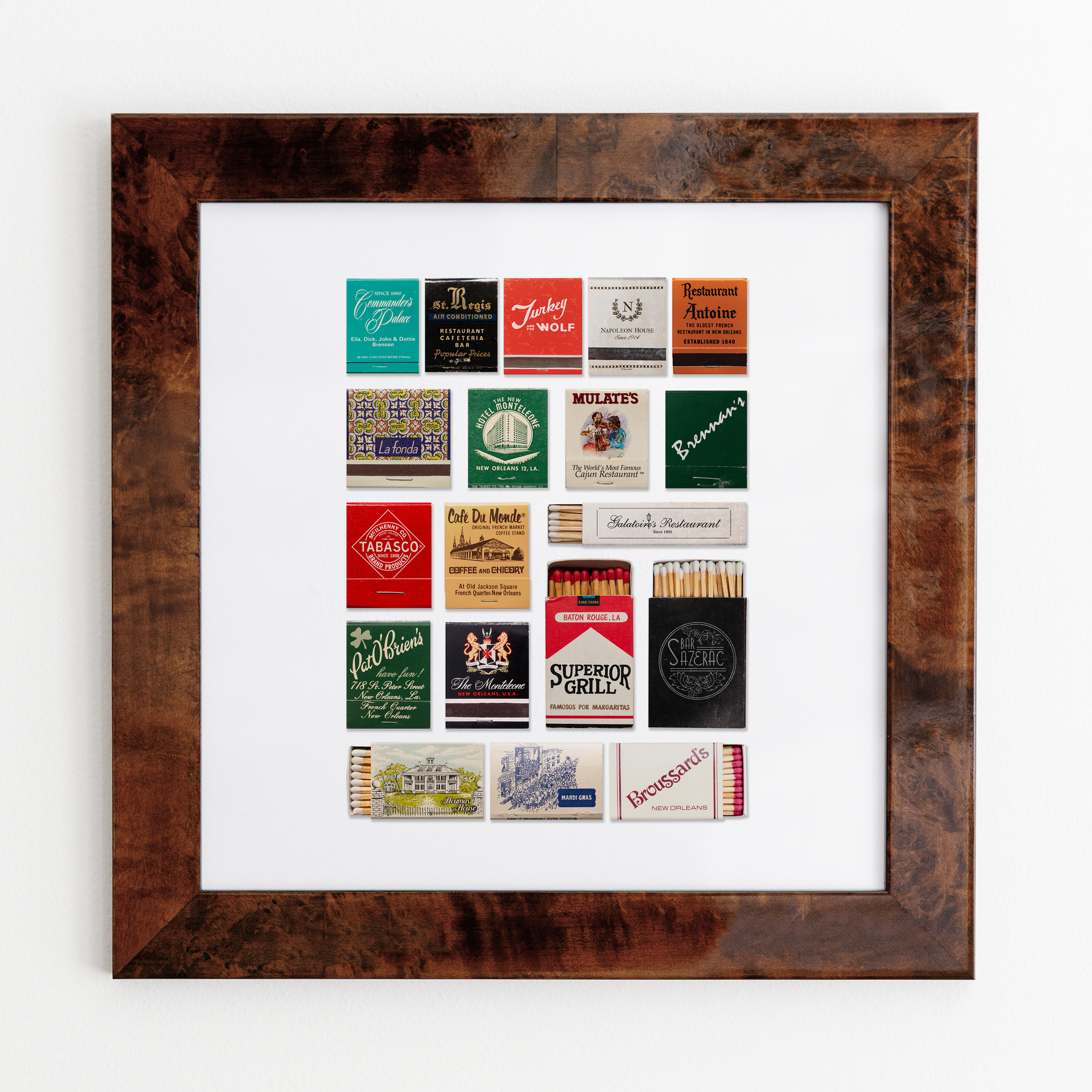The New Orleans Collage print showcases an iconic matchbook design.