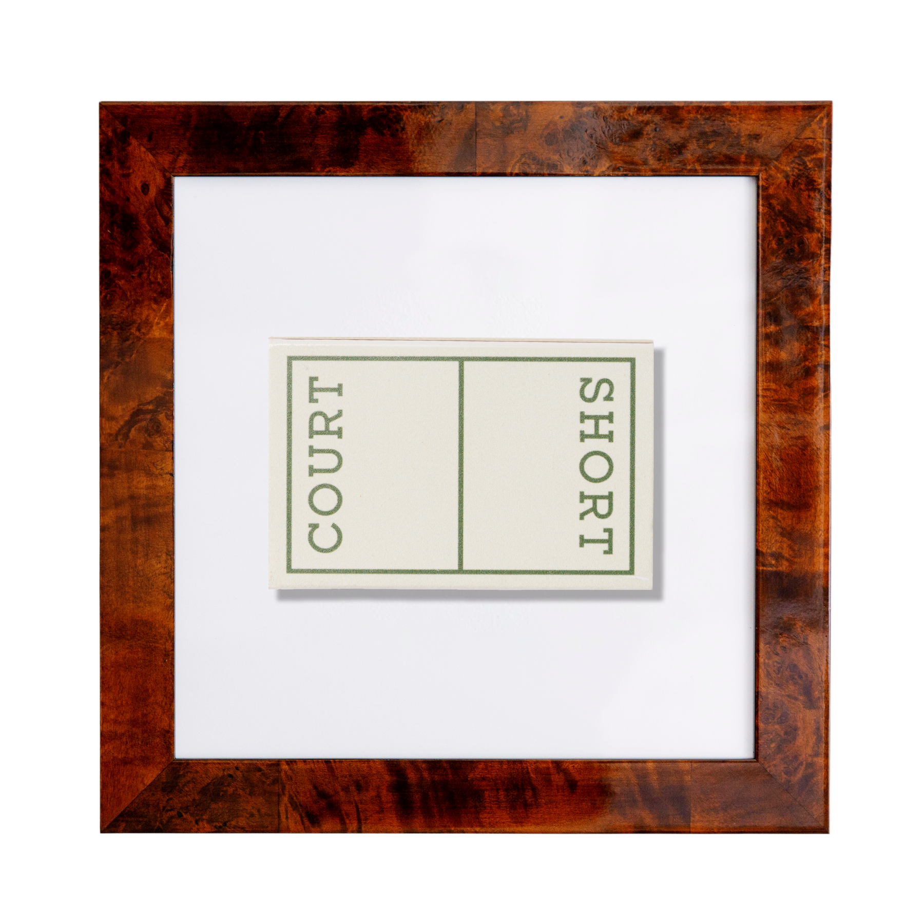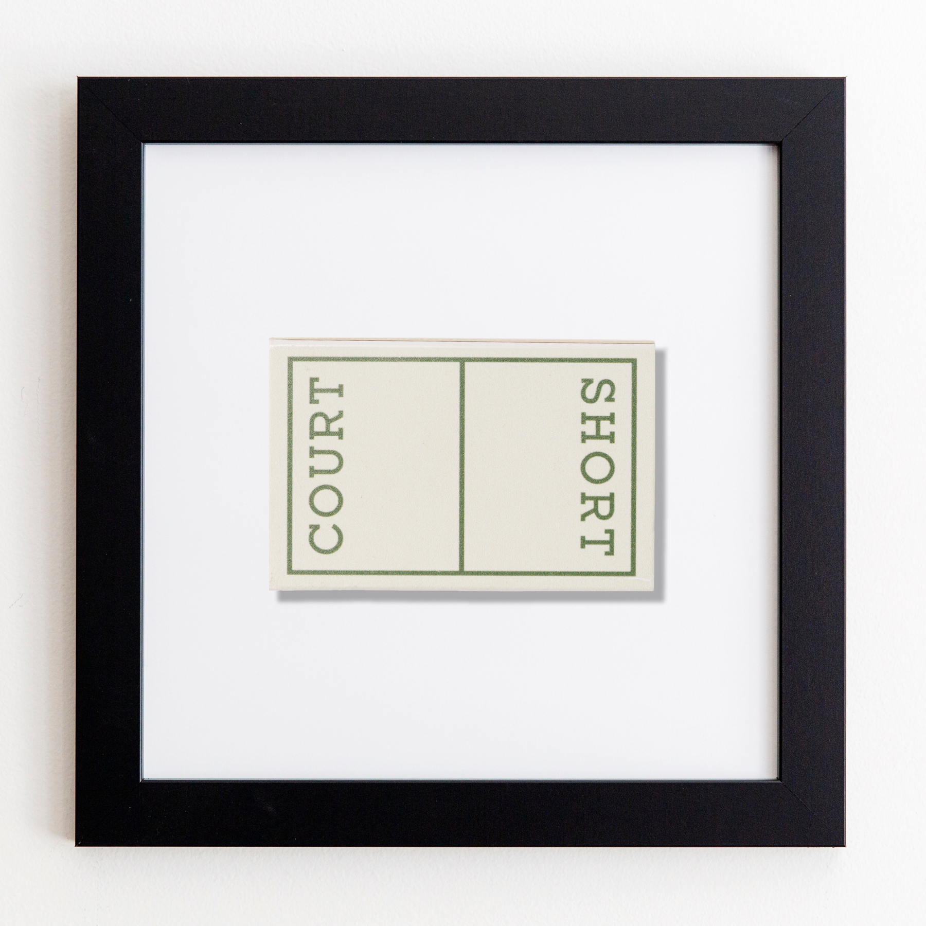 The Short Court print showcases an iconic matchbook design.