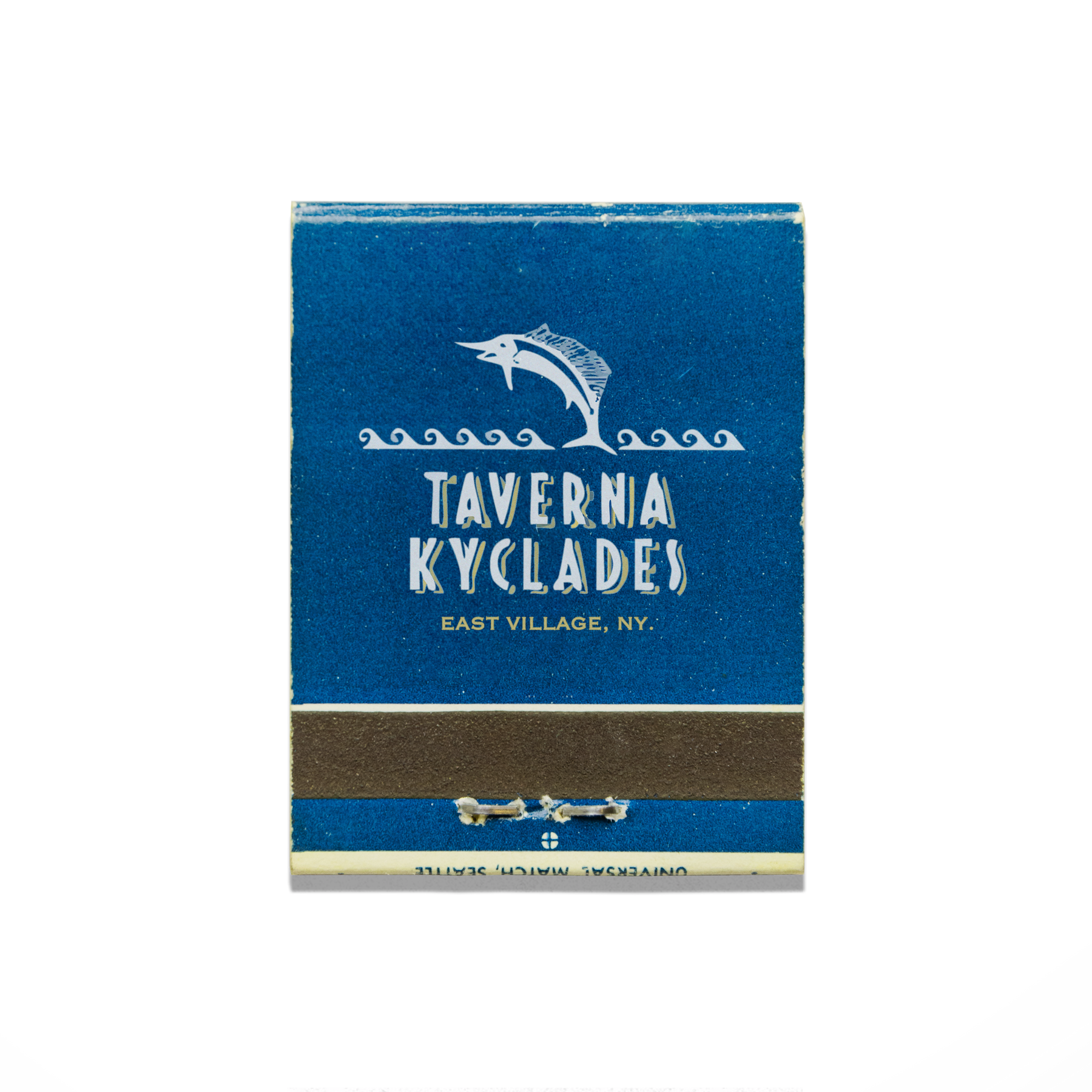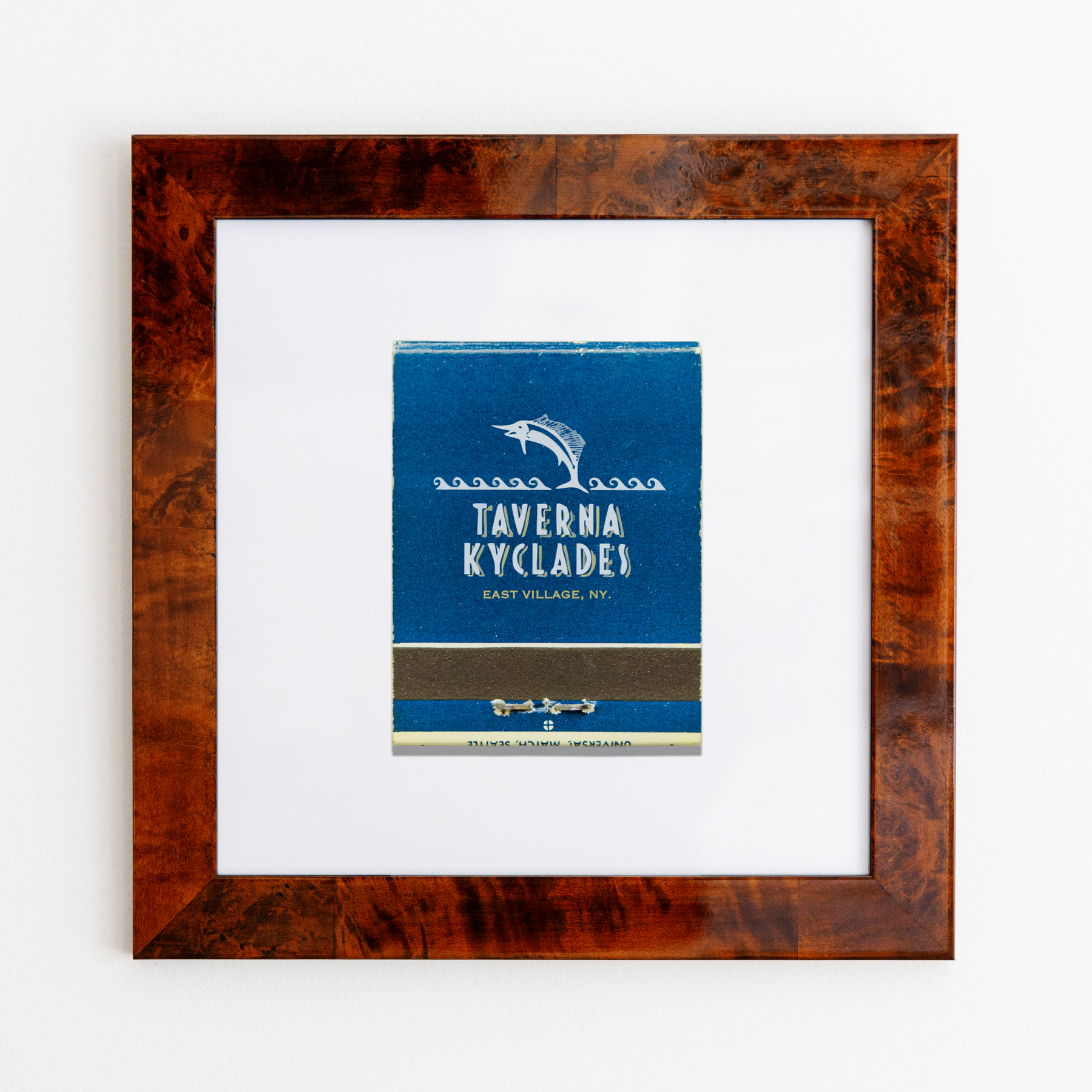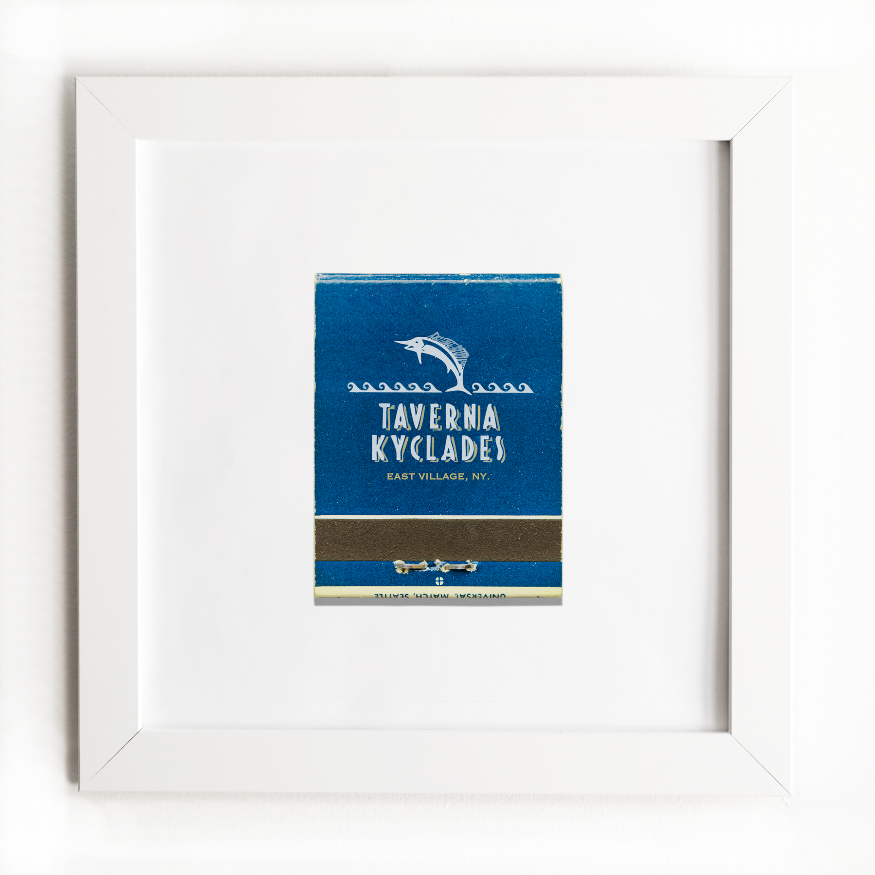 The Taverna Kyclades print showcases an iconic matchbook design.