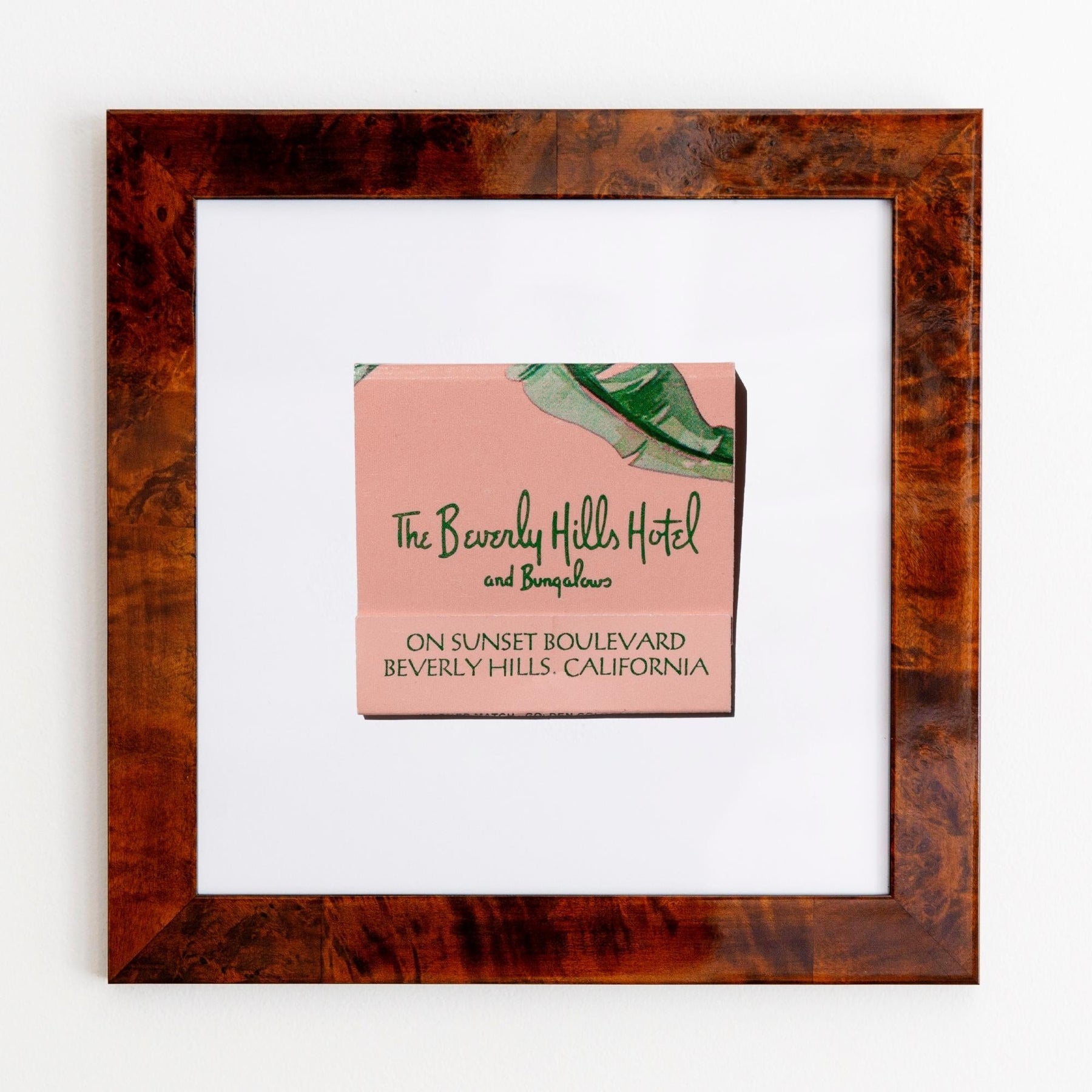 The Beverly Hills Hotel print showcases an iconic matchbook design.