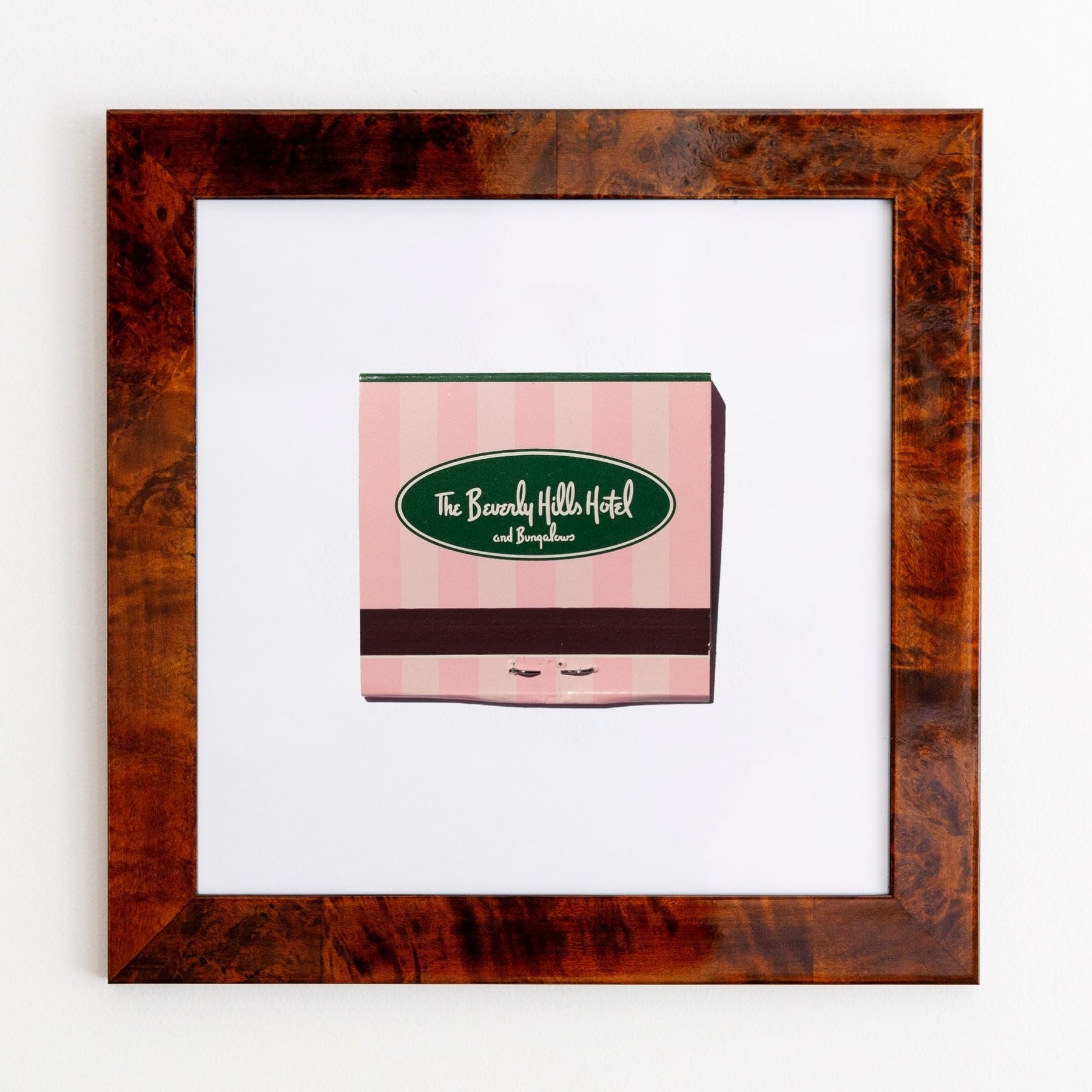 The Beverly Hills Hotel (Green Oval) print showcases an iconic matchbook design.