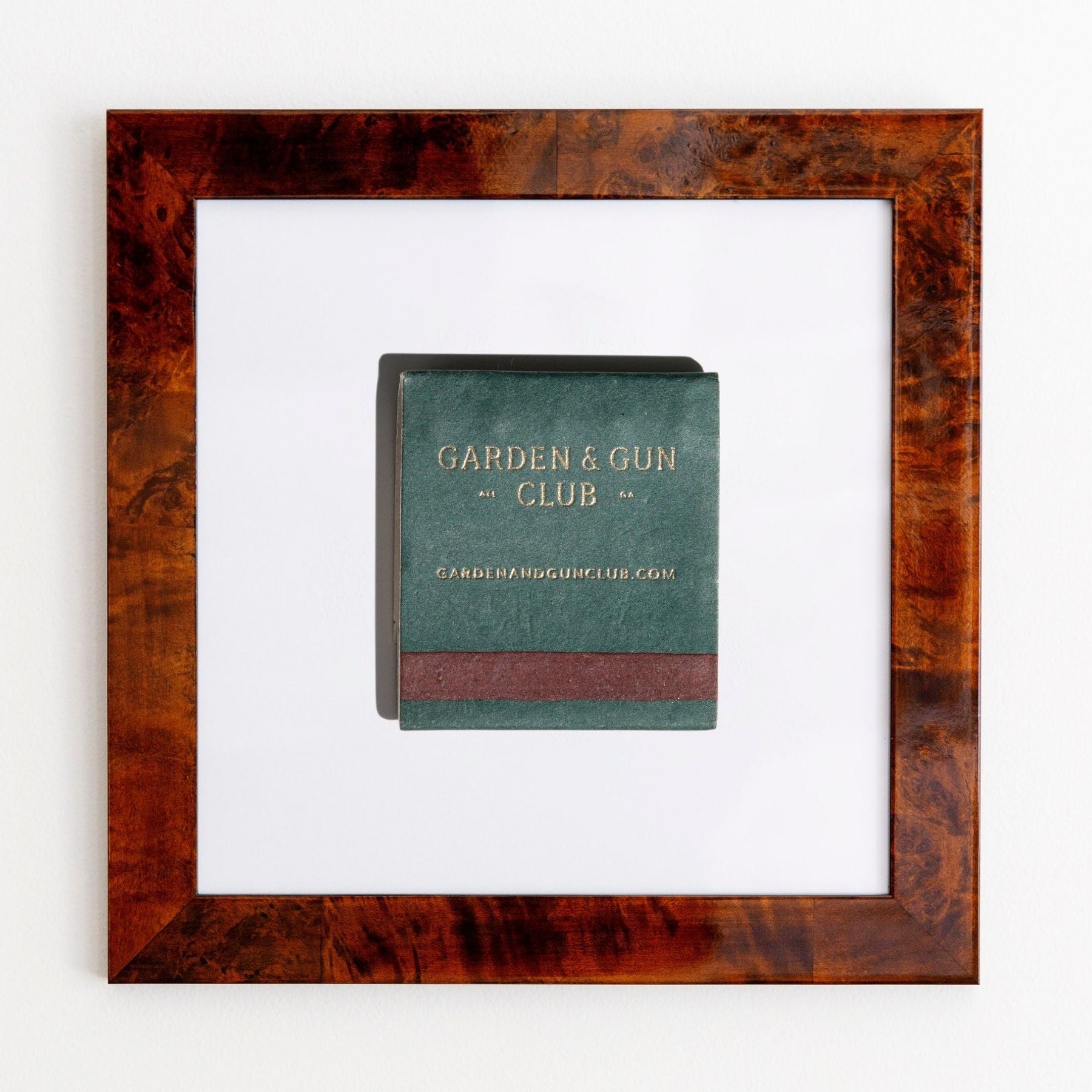 The Garden and Gun Club print showcases an iconic matchbook design.