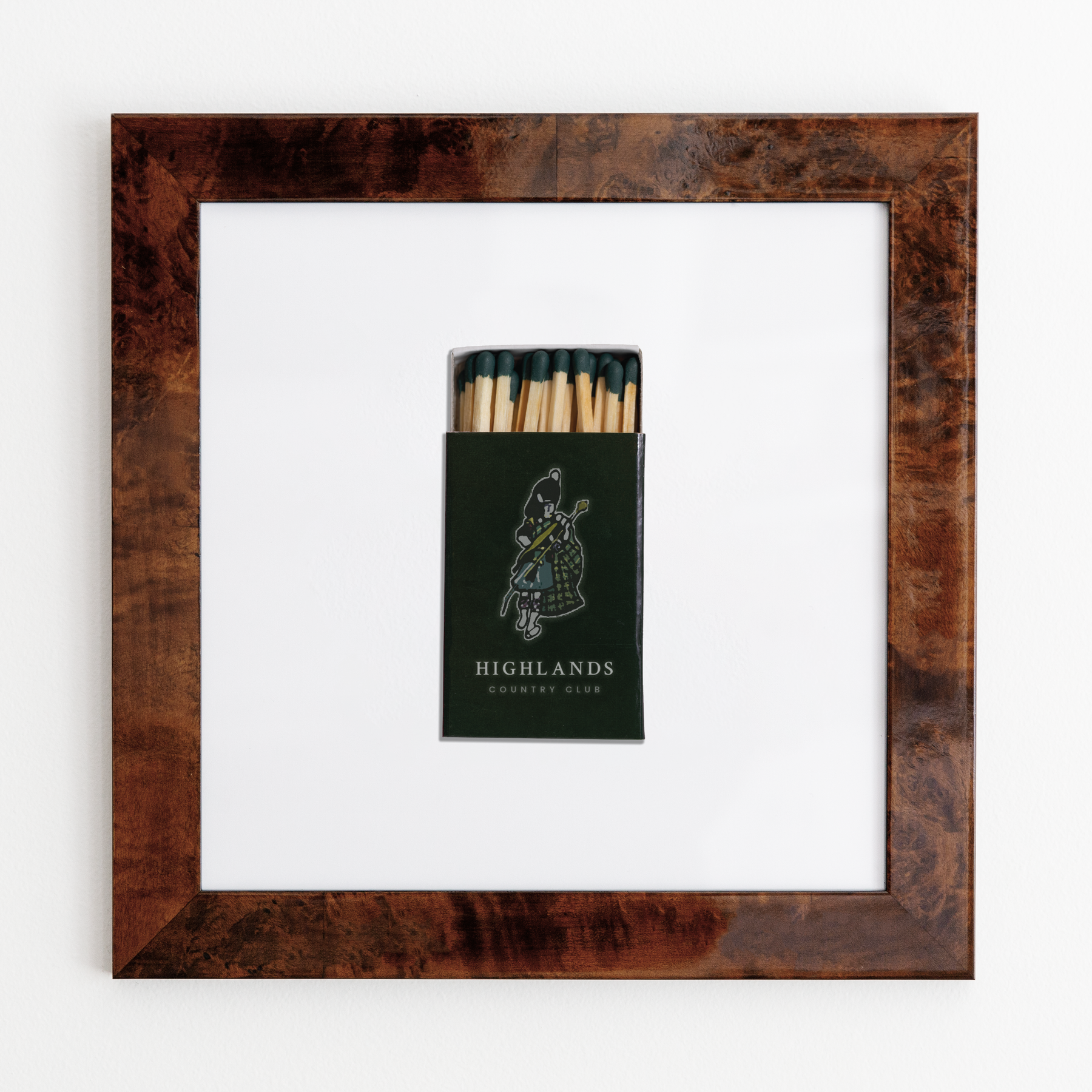 The Highlands Country Club print showcases an iconic matchbook design.