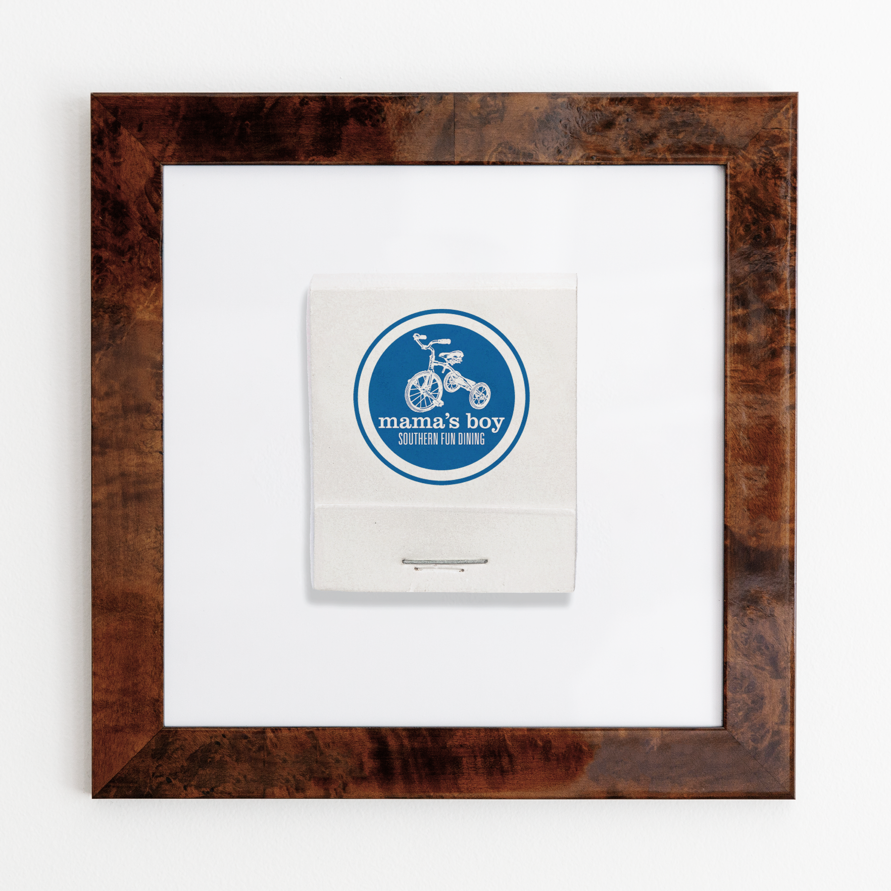 The Mama's Boy print showcases an iconic matchbook design.