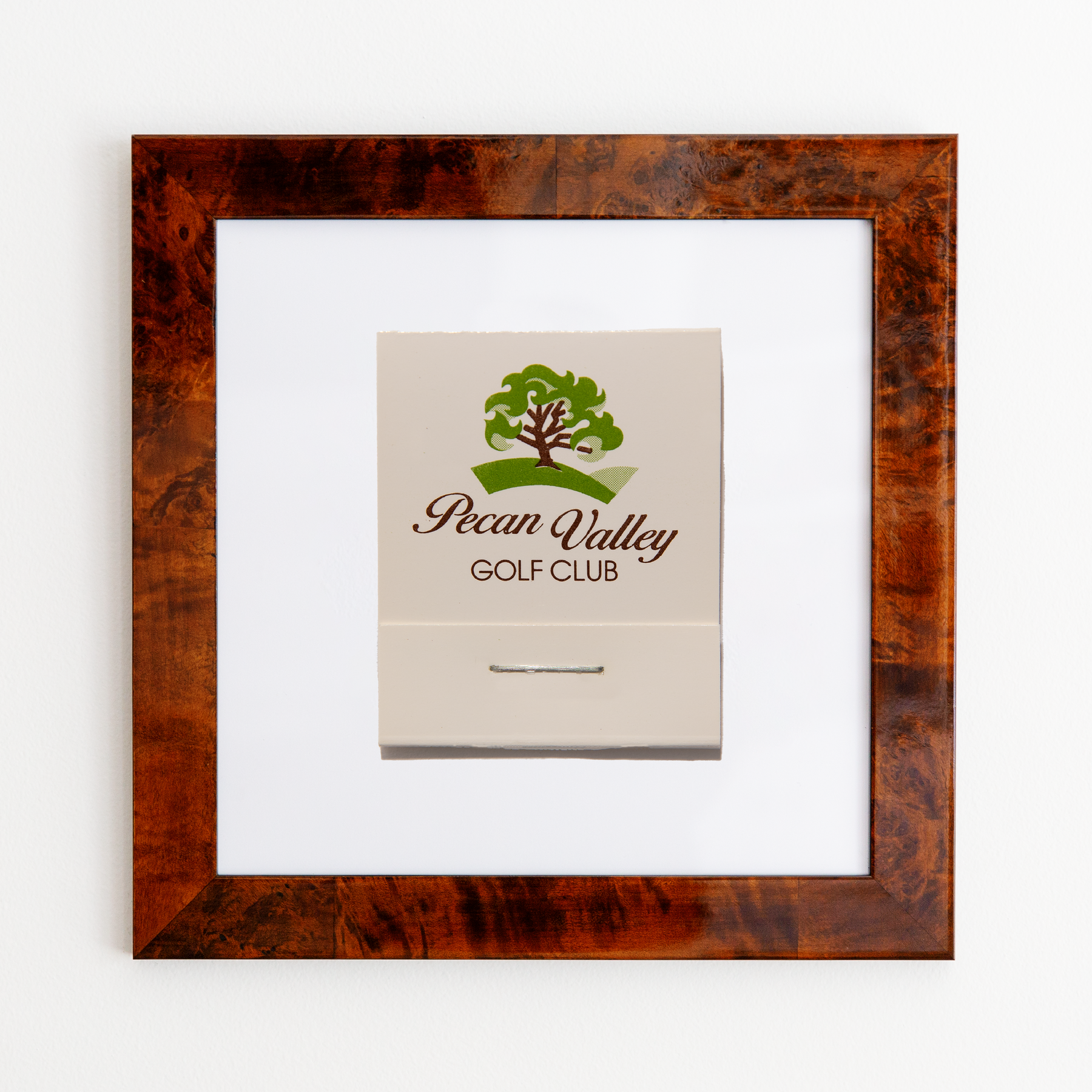 The Pecan Valley Golf Club print showcases an iconic matchbook design.