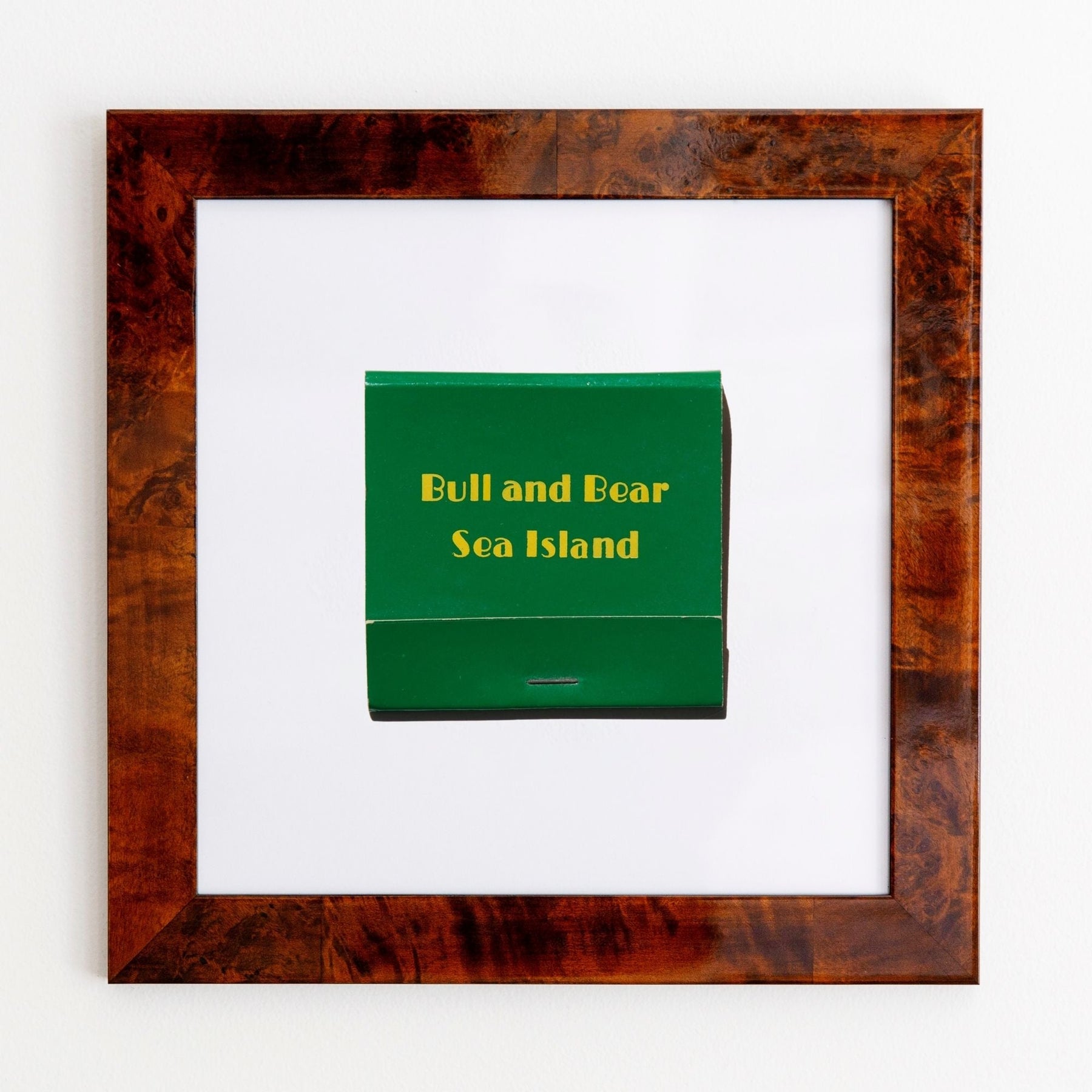 The Sea Island (Bull and Bear) print showcases an iconic matchbook design.