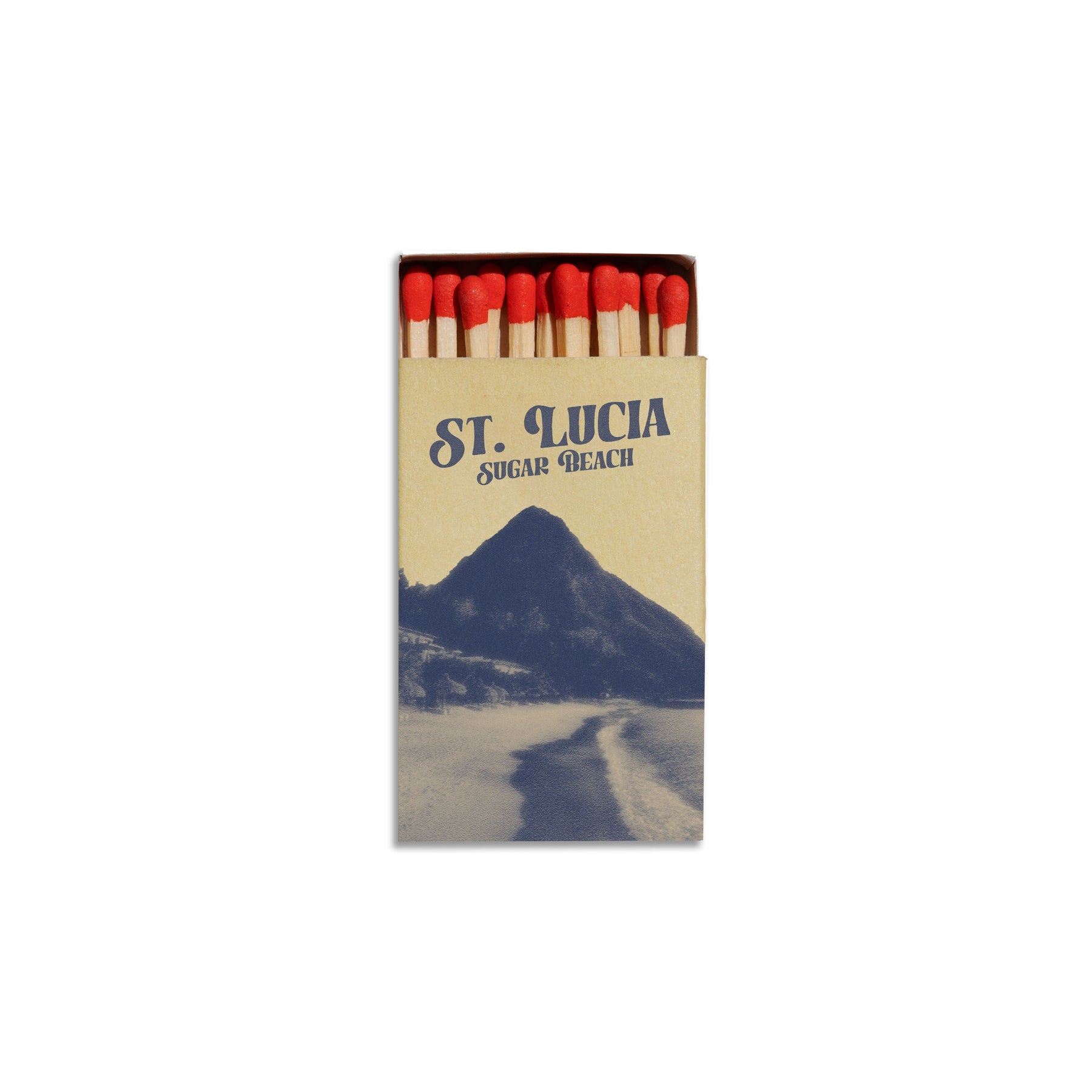 The St. Lucia Sugar Beach print showcases an iconic matchbook design.