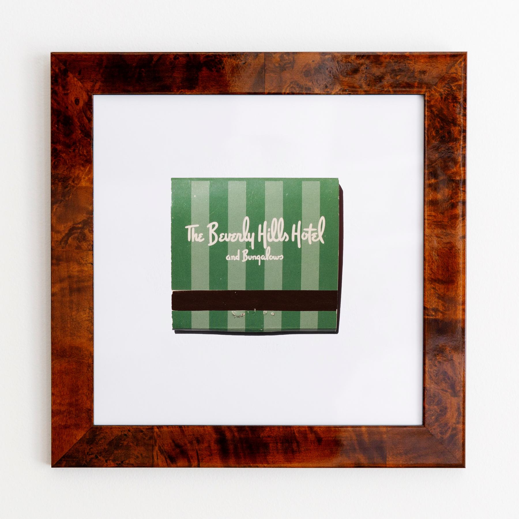 The Beverly Hills Hotel (Green Stripes) print showcases an iconic matchbook design.