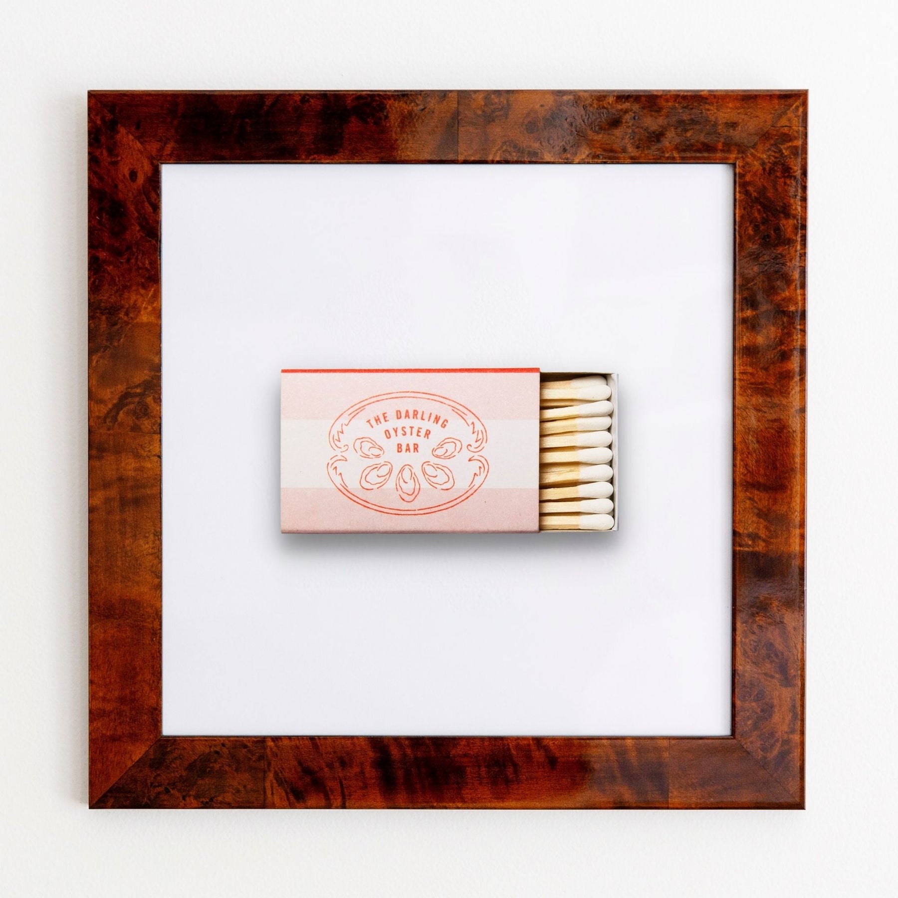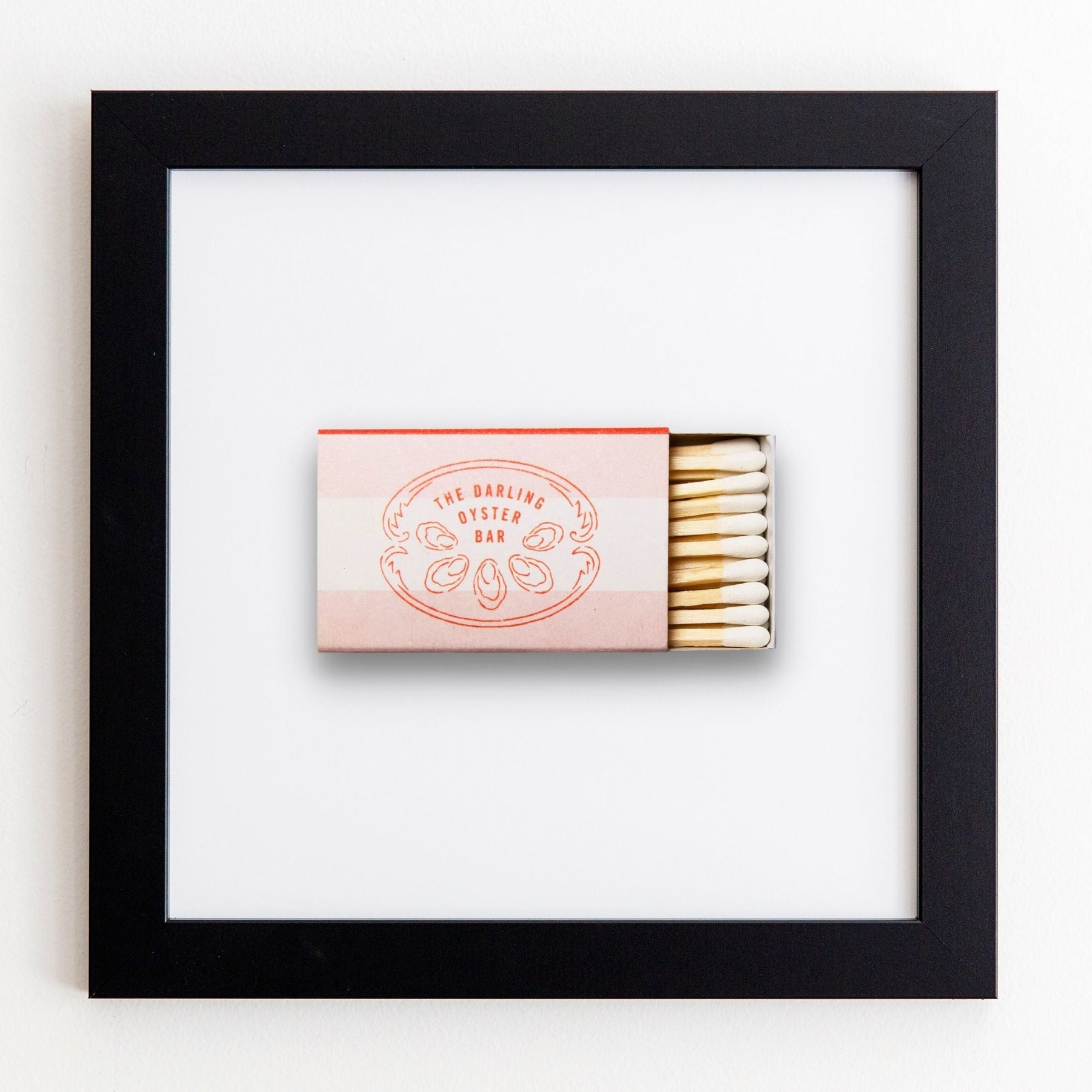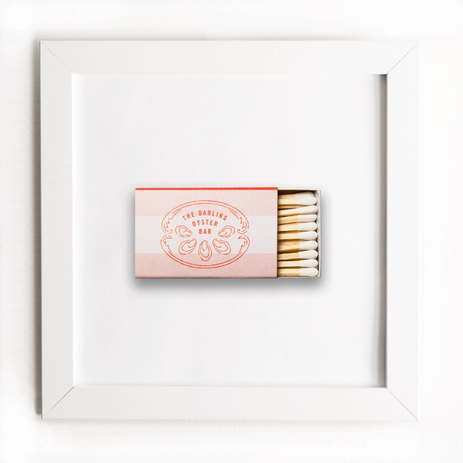 The Darling Oyster Bar (Peach) print showcases an iconic matchbook design.
