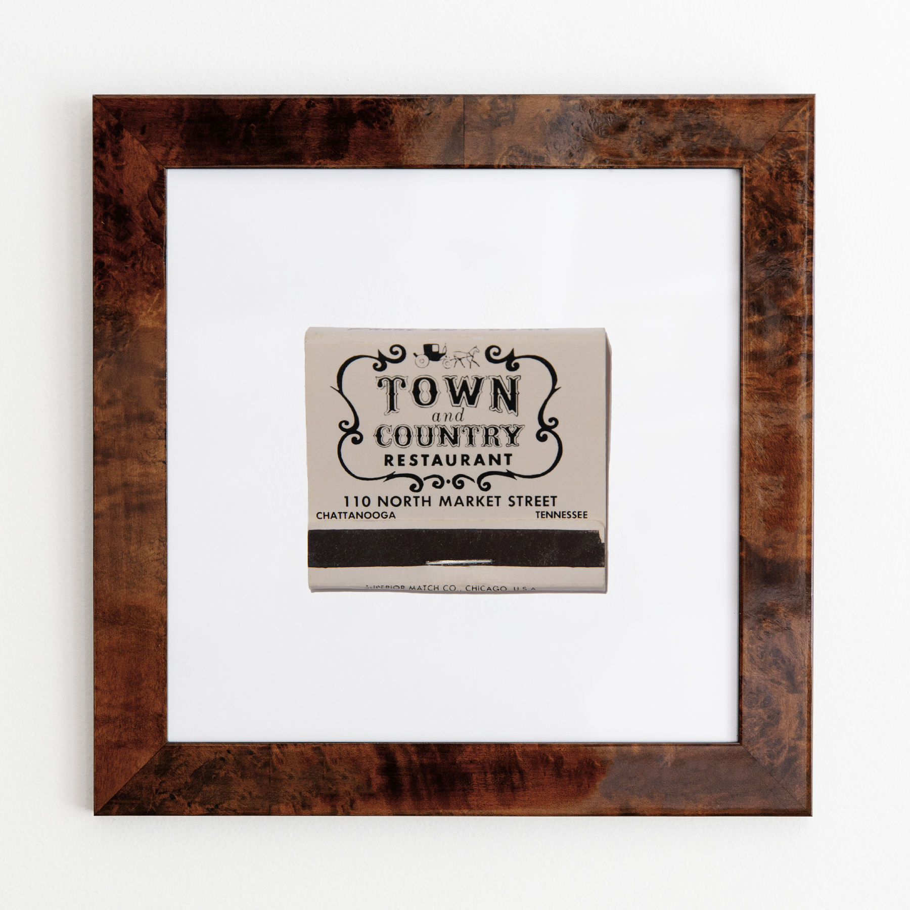 The Town and Country Restaurant Chattanooga print showcases an iconic matchbook design.