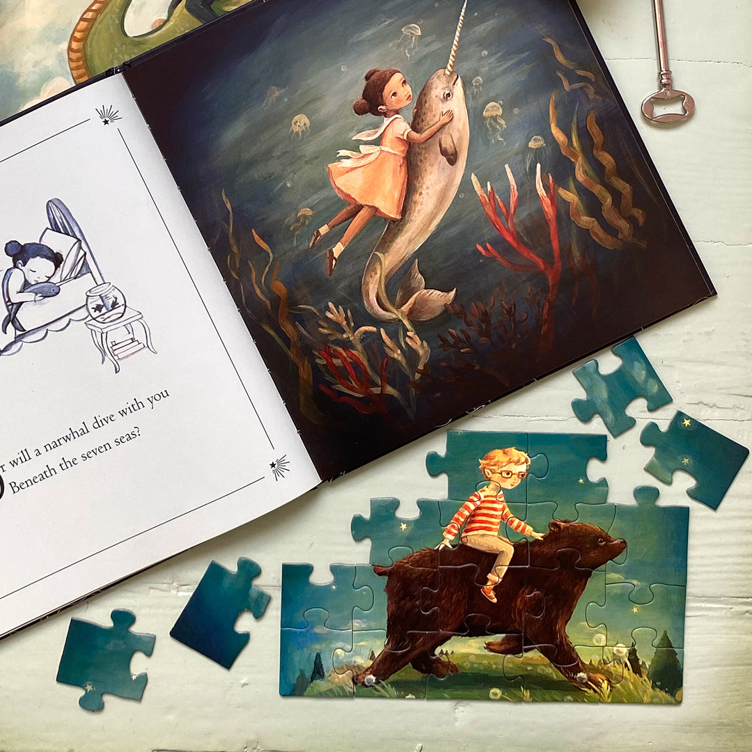 This dream Narwhal will escort you to the land of dreams and possibly a Tea Party under the sea. From Emily Winfield Martin’s beloved children’s book Dream Animals.