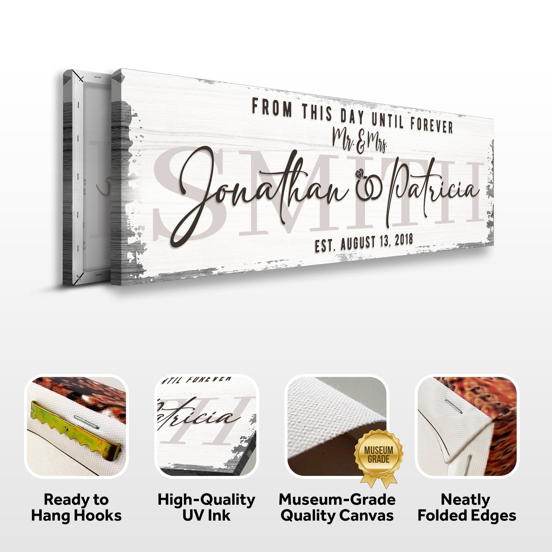 Why not use a Wedding Sign wall art to truly personalize your once-in-a-lifetime wedding day? This elegant sign may be personalized with your favorite song lyrics, making it a one-of-a-kind complement to your big day. The sign comes in three sizes, so you can choose the best one for your wedding venue. Because the canvas material is sturdy and easy to maintain, you may use this Wedding Song Sign for many years. So, to add a little flair to your wedding day, use a Wedding Sign print. Your guests will remember your special day for the rest of their lives.