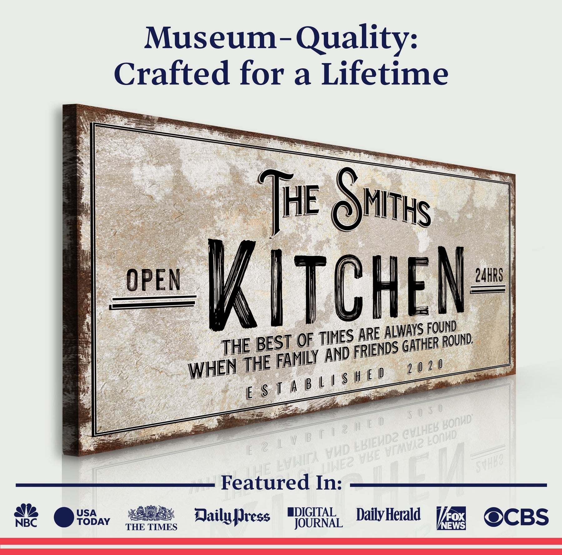 Each Family Kitchen wall art is made of high-quality materials and is expertly crafted by our skilled artisans. The canvas is stretched over a sturdy frame and then personalized with your choice of family surname. This makes for a truly unique and one-of-a-kind piece of art that will become a cherished family heirloom.