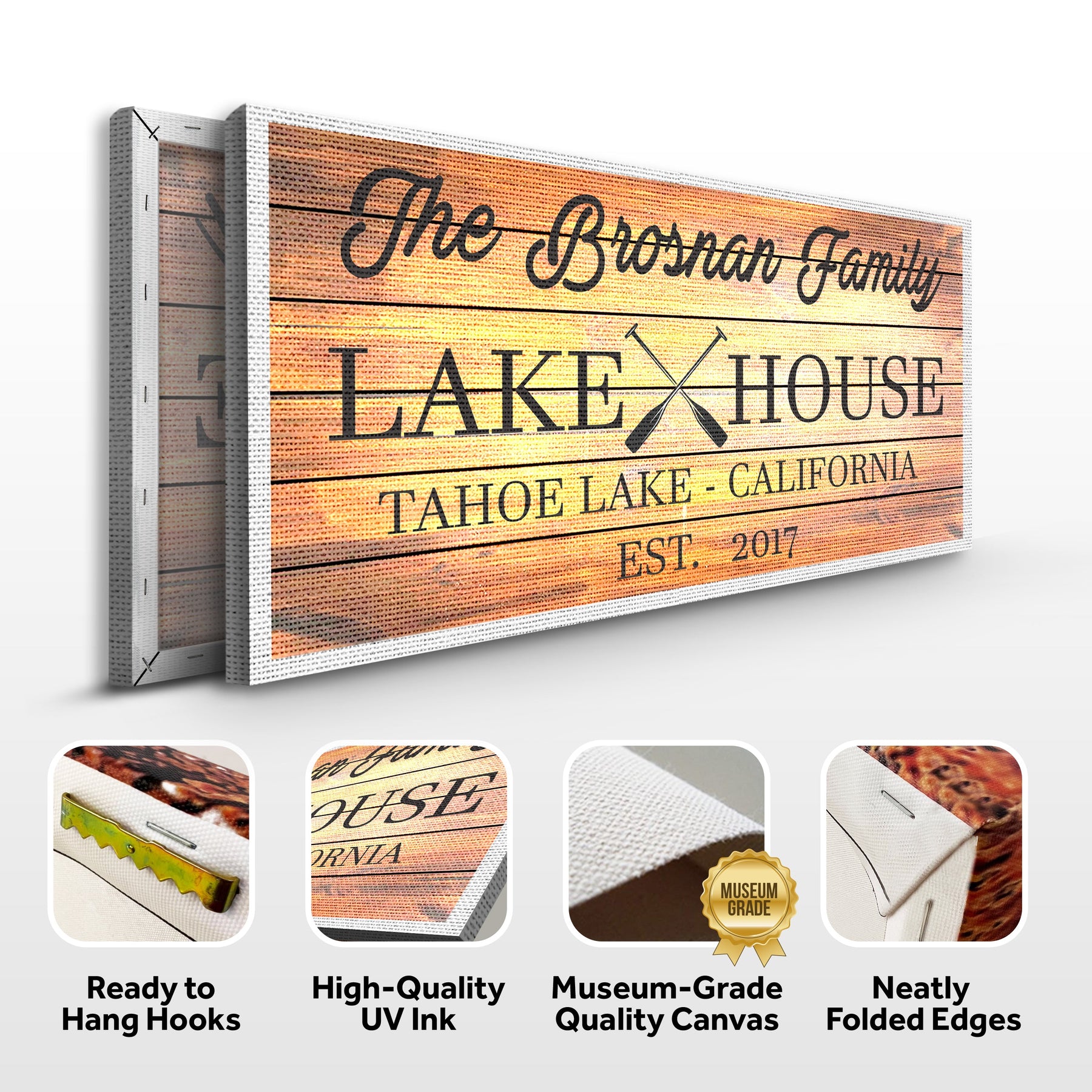 Do you own a lakehouse that your family gathers at every vacation? Personalize it with this family lakehouse paddle sign. Whether you opt for something vintage, cool and water-themed, or rustic with a paddle feature, a family lakehouse paddle sign is a great way to show your love for the lake as well as paddling. You can display it in your lakehouse for branding or in your home to remind yourself and your family of your favorite holiday getaway. Either way, a family lakehouse paddle canvas print will add some personality and uniqueness to your personal space. So what are you waiting for? Customize one for yourself and see the difference it makes!