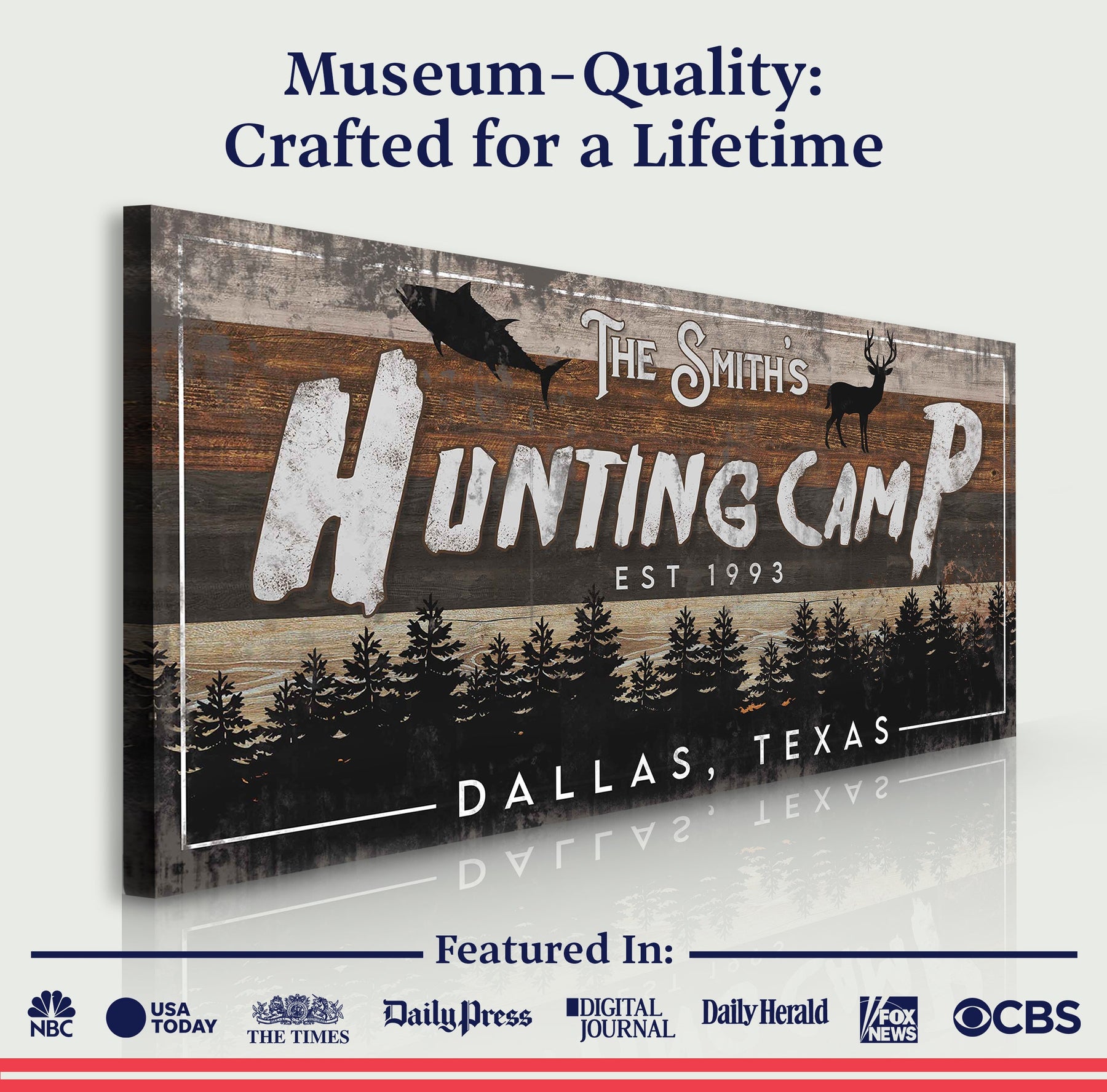 Each fishing and hunting sign is made to order, ensuring that each one is uniquely made just for you. Hang this fishing and hunting canvas wall art with pride, knowing that it was made with the utmost care and attention to detail. Whether you choose to add your name to it or beautify it with your taste in design, it will spell out your personality perfectly.