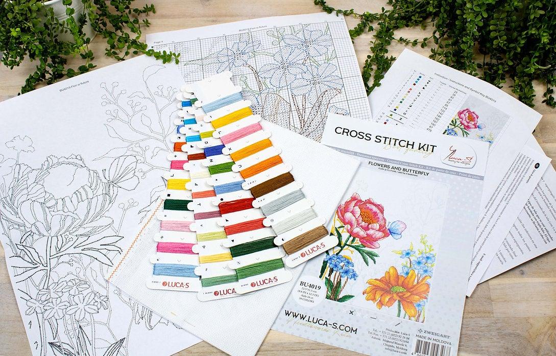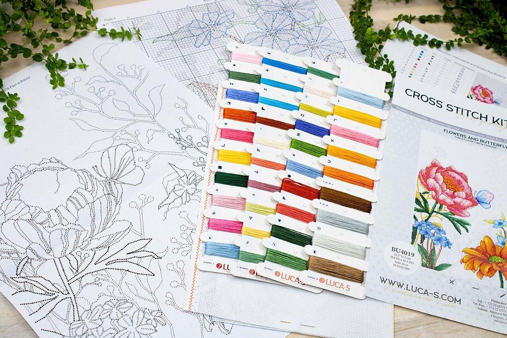 Flowers and Butterfly BU4019L Counted Cross-Stitch Kit