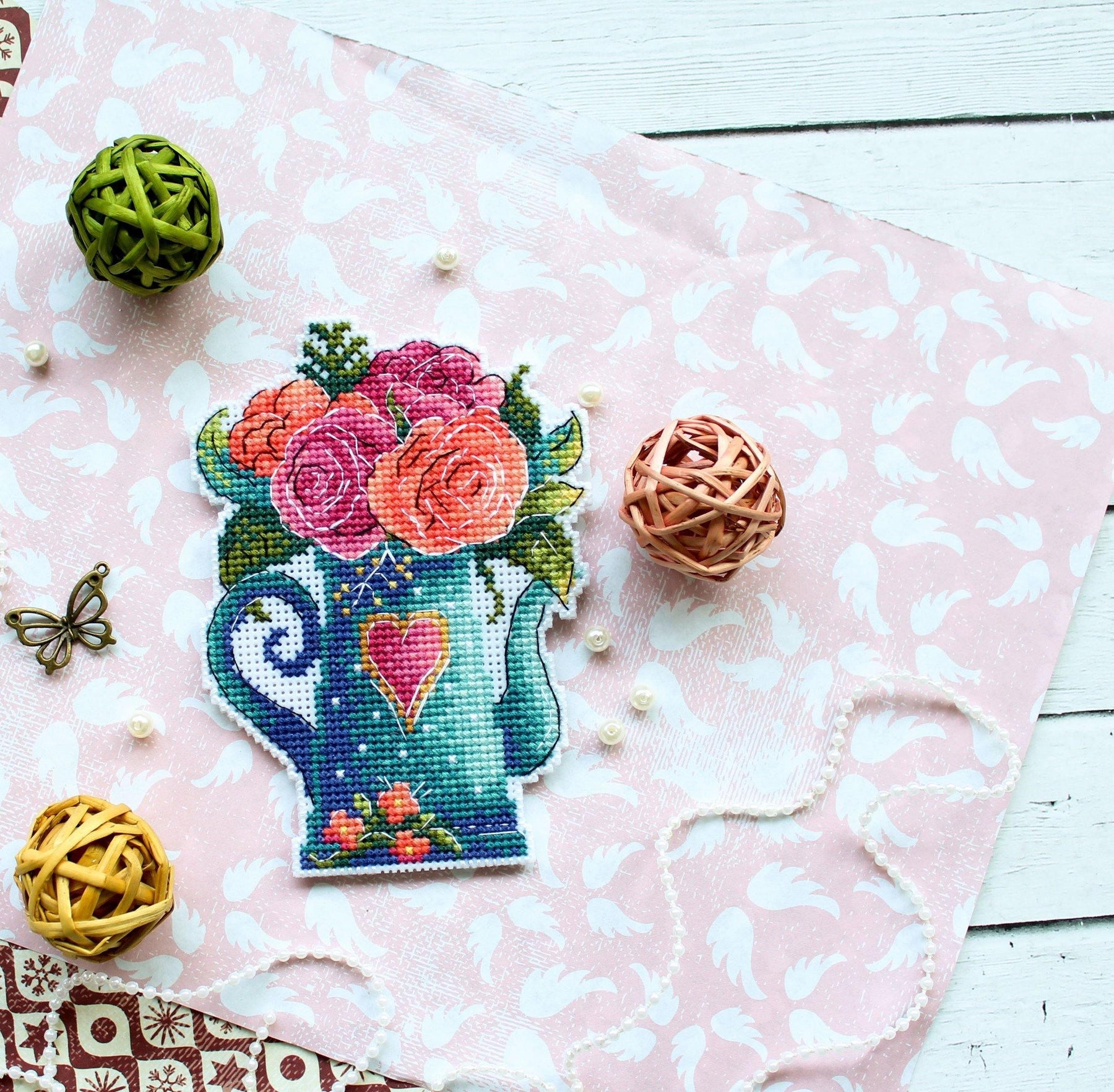 - Important notes: Both sides are cross-stitched according to the pattern, then cut along the outline indicated in the guide, and sewn together with the wrong sides inward.